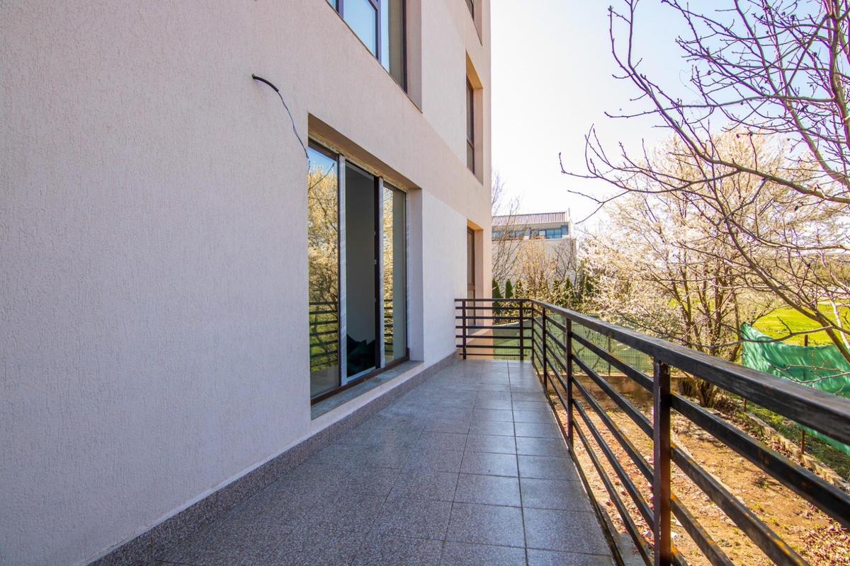 Apartament 2 camere, suprafata generoasa de 85 mp. Acesta vine cu o compartimentare eficienta, bucatarie inchisa de peste 14 mp., living 28 mp., dormitor 15 mp., baie 5 mp. si o curte de 90 mp.