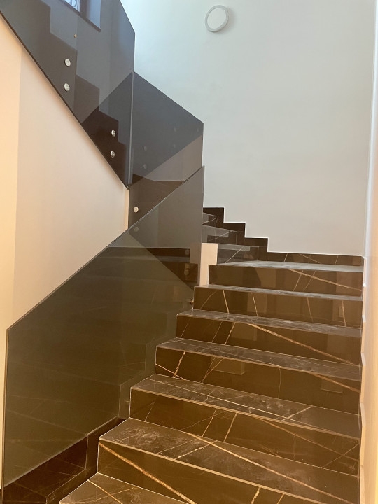 • Balcoane cu balustrade din sticla fumurie laminata si securizata.