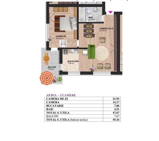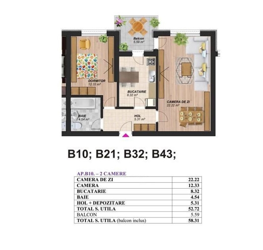 Sunt doua tipuri de doua camere unul decomandat in suprafata de 52+6 mp balconul la pretul de 76.000 euro si cel din anunt la 72.000 euro.
