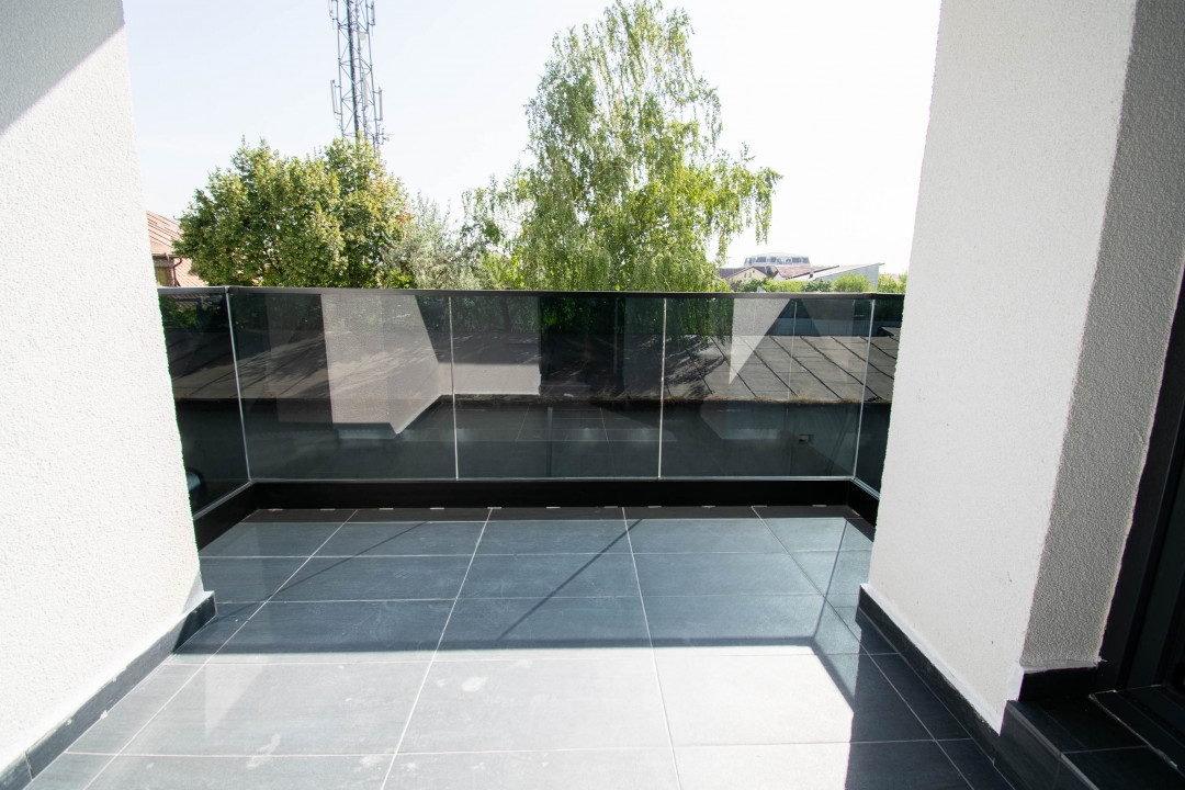 • Balcoane cu balustrade de sticla fumurie laminate si securizata.
