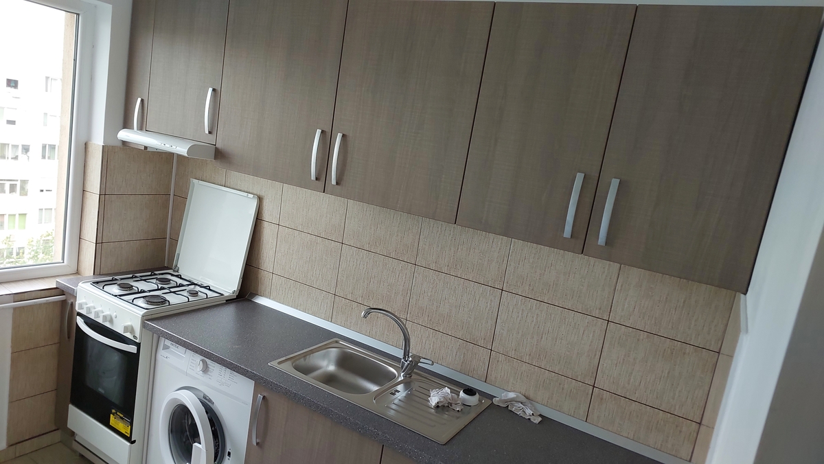 ap. 2 camere decomandat, 53 mp, etaj 10/10, vis a vis Iris Titan Complex Auchan Titan, Str. Jean Steriadi bloc L15, 10 min. metrou 1 Decembrie, renovat, mobilat in bucatarie (inclusiv sertar joile) si baie, aragaz, masina de spalat, posibilitate racordare centrala termica la gaze (conductele de gaz sunt montate in exterior la fiecare apartament), orientare fatada Est, usi noi, usa metalica acces apartament, instalatii sanitare si electrice noi, ferestre termopan noi, gresie, faianta, negociabil
