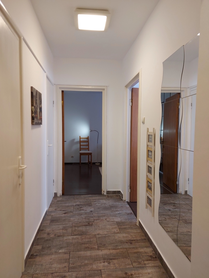 Apartamentul se vinde mobilat si utilat, asa cum este in fotografii. Pe langa camara si debaraua din hol, s-a creat un spatiu de depozitare suplimentar in camera de zi prin dulapul de tip dressing foarte incapator si care salveaza aglomerarea dormitorului. Mobilierul din bucatarie este facut pe comanda iar cuptorul si plita vitroceramica Franke sunt electrice.