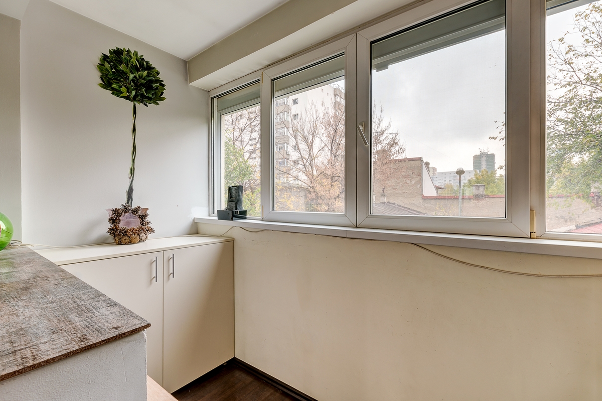 Suprafata utila a apartamentului este de 52mp, la care se adauga suprafata balconului de 4mp inchis cu termopan si inclus in spatiul util, in total fiind 56mp. Balconul chiar poate fi un mic birou, fiind suficient de lat pentru a acomoda un spatiu de lucru.