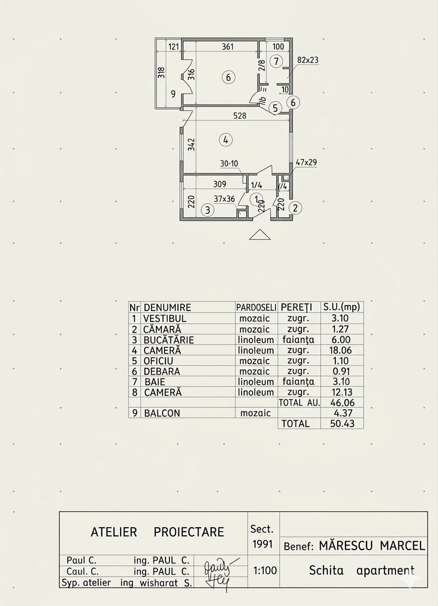 Suprafata: 50 mp ( 46 mp utili), Confort 1, semidecomandat, etaj 6/10;
