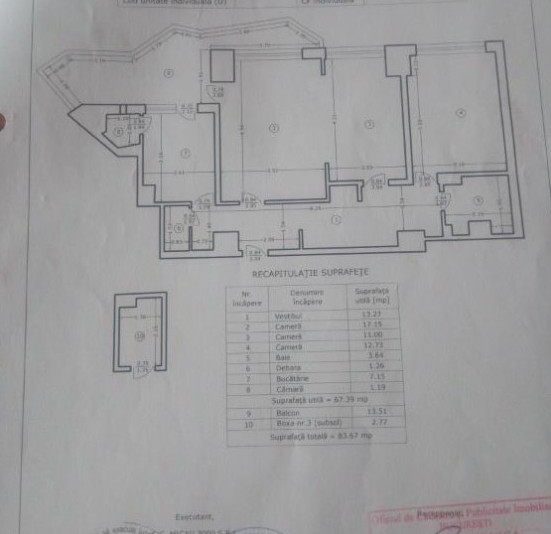 Alcatuit din 3 camere si dependinte, tip apartament decomandat, suprafata utila 68 mp, suprafata construita 80 mp.