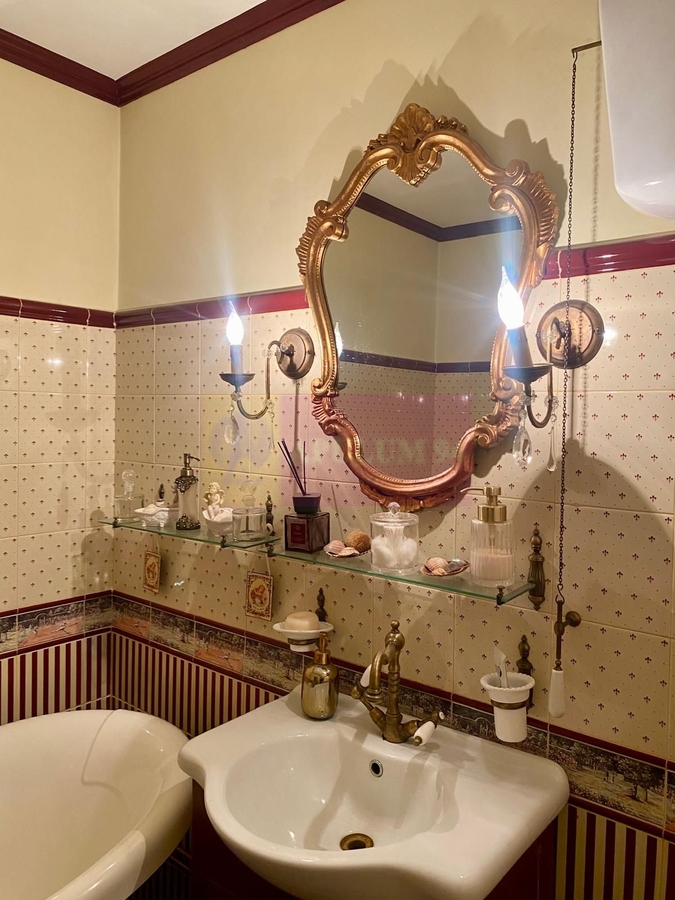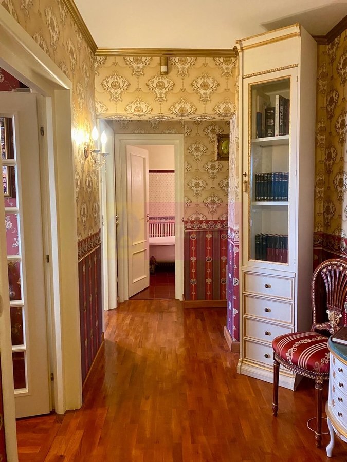 Nu stiu cate apartamente ai vizitat pana acum, dar, e aproape imposibil sa intri aici si sa nu ai o reactie. Prima impresie este clara: design baroc, asumat. Aur. Oglinzi. Mobilier cu detalii sculptate, pereti incarcati vizual. Atmosfera boema, calda, teatrala, nimic minimalist.