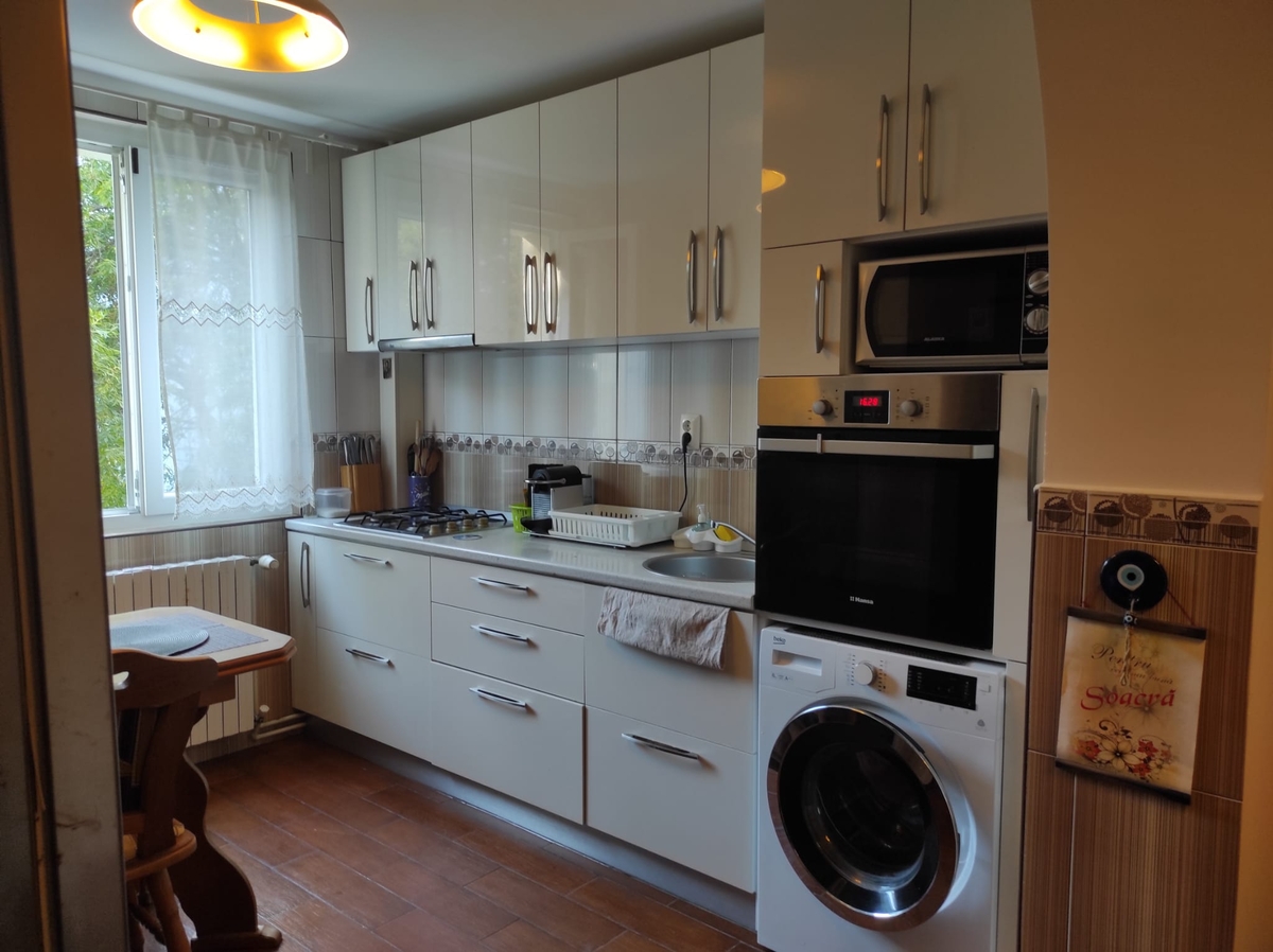 Un apartament in care lumina si spatiul lucreaza impreuna pentru a crea o locuinta care iti evoca sentimentul de comoditate, relaxare si multumire. Este o casa pentru cei carora le place sa petreaca timp de calitate acasa, impreuna cu familie, prieteni sau singuri cu o carte buna, lumanari si o cana fiebinte de ceai. Bucataria si baia sunt complet utilate cu echipamente si accesorii moderne. Usi de stejar. Vedera este mixta, strada curata, ferita de zgomotul suparator. Pretul afisat este pentru varianta nemobilata. Scara curata, vecini super decenti, poate fi idealul caminului pe care il cautati.