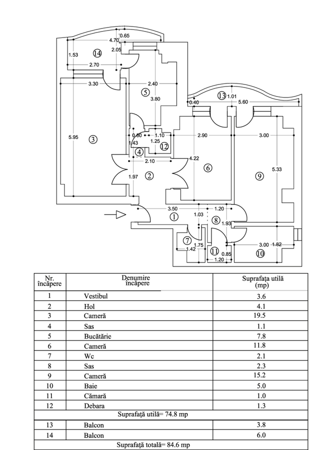 - S-a pastrat compartimentarea initiala - nu s-au daramat ziduri/incaperi. Apartamentul este identic ca in cadastru.