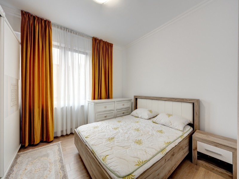 Amplasare convenabila, la 4 minute de mers pe jos de metrou, in cartier de case si imobile cu regim mic de inaltime, zone verzi, scoli si centre comerciale. Apartament elegant, cu un plan excelent, potrivit pentru familie. Imobil din 2016, cu spatii comune bine intretinute. Interior luminos, frumos amenajat, in stare excelenta, cu spatii vitrate mari si camere spatioase. Apartamentul e situat la etajul 2, si se bucura de o bucatarie inchisa de 11 mp, 2 dormitoare de 11 si 14 mp, 2 bai, una cu aerisire naturala si cada, cealalta echipata cu dus, si beneficiaza de centrala proprie.