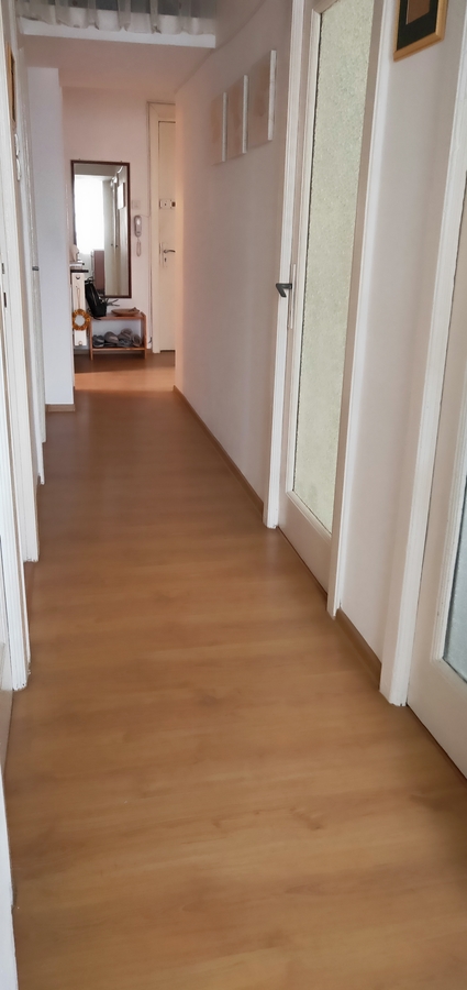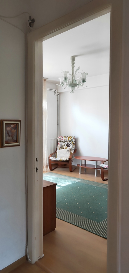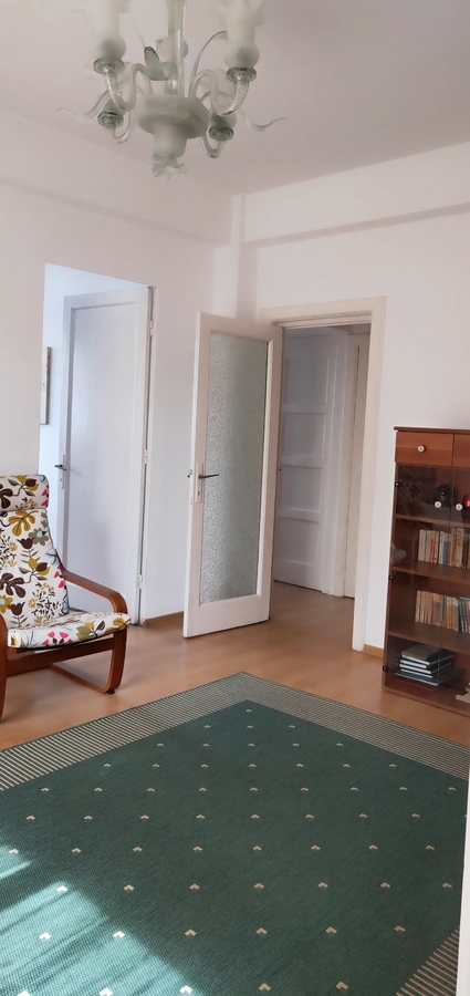 Apartamentul este format din 3 camere – doua dormitoare, o sufragerie, o camera de dimensiuni mai mici, doua holuri, baie si WC in incaperi separate, camara si balcon.
