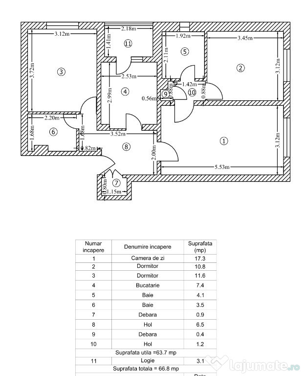 Optiuni interior: 2 grupuri sanitare Aer conditionat Apometre Balcon Centrala termica Contor gaze Debara Inst. electrice noi Inst. sanitare noi Izolatie termica Termopan Usa metalica