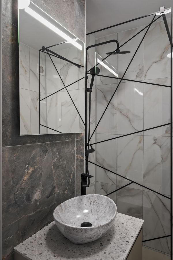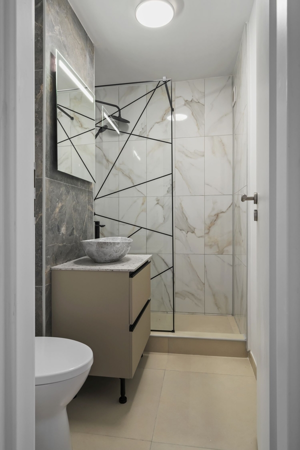 • baie complet refacuta, cu dus modern tip walk-in si mobilier nou