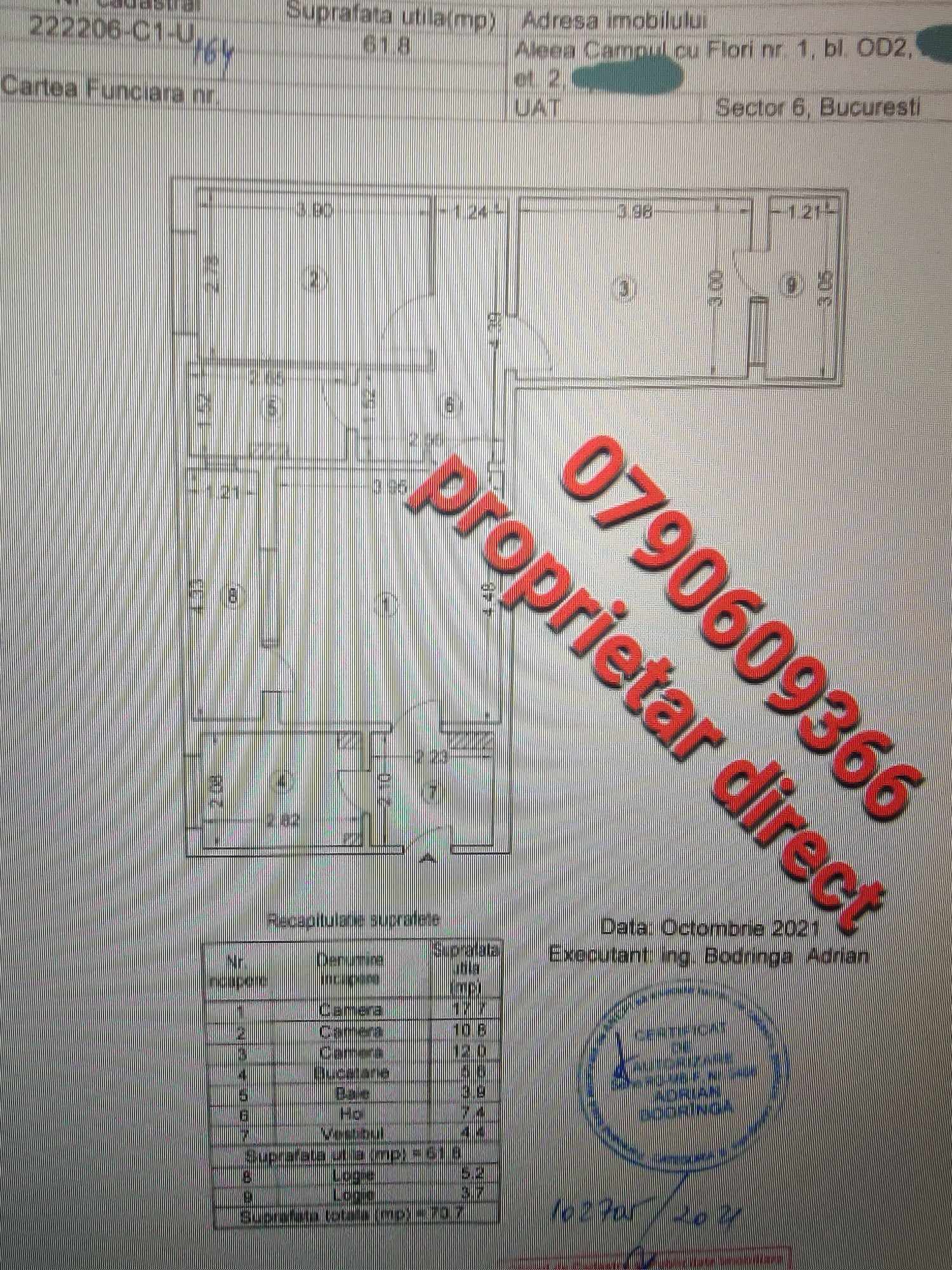 - a fost schimbat absolut tot de la A-Z (instalatie electrica cu includere tuburi de protectie pentru cabluri, lumini inclusiv pe cele 2 balcoane cu intrerupatoare separat, in dormitoare si living corpuri iluminat si cu telecomanda, termopane noi, usi interioare noi, gletuit, tras sapa, proaspat zugravit, parchet nou de 12mm clasa de trafic 33, calorifere cu repartitoare pe unde radio, gresie si faianta de buna calitate, mobila de bucatarie facuta pe comanda, electrocasnice noi - masina de spalat, cuptor, plita, hota - baia este tip dus walk in}.