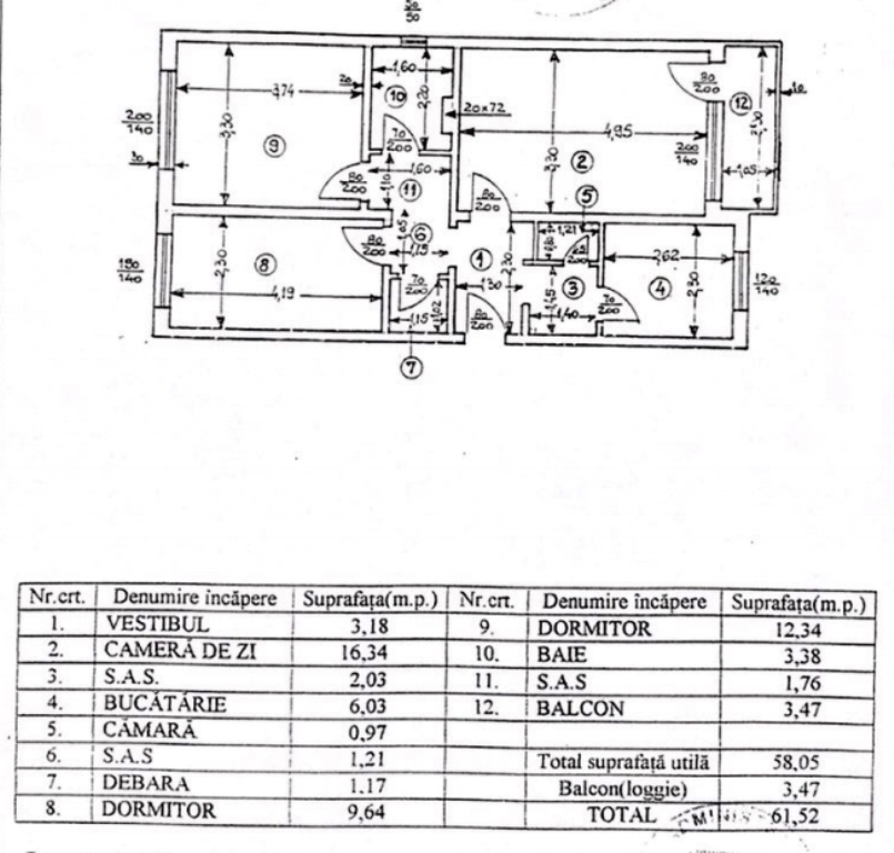 Optiuni interior: Aer conditionat Apometre Balcon Debara Inst. electrice noi Repartitoare caldura Termopan Usa metalica