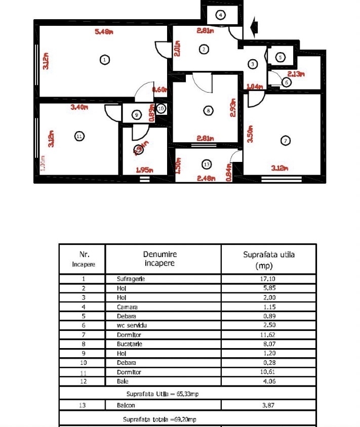 Optiuni interior: 2 grupuri sanitare Apometre Balcon Debara Izolatie termica Repartitoare caldura Termopan Usa metalica