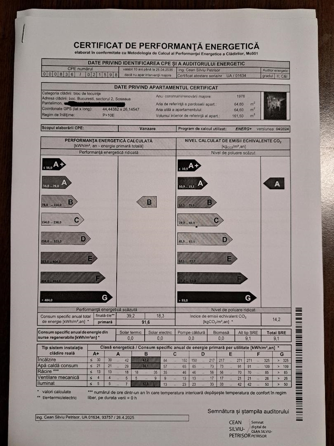 bloc reabilitat termic, pozitionat bine, avand acces rapid catre centru si toate zonele, la 5min. de mega mall, metroul Iancului la 12min. orientare est, pe mijloc, ap. dispune de 2bai, este curat, avand cadastru- intabulare- certificat energetic clasa 'B-A' fiind eligibil pentru creditare.