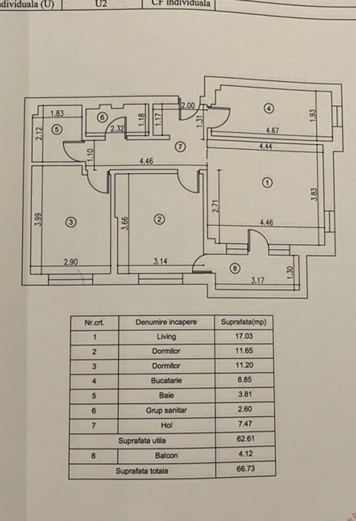 Optiuni interior: 2 grupuri sanitare Apometre Balcon Centrala termica Contor gaze Inst. electrice noi Inst. sanitare noi Izolatie termica Termopan Usa metalica