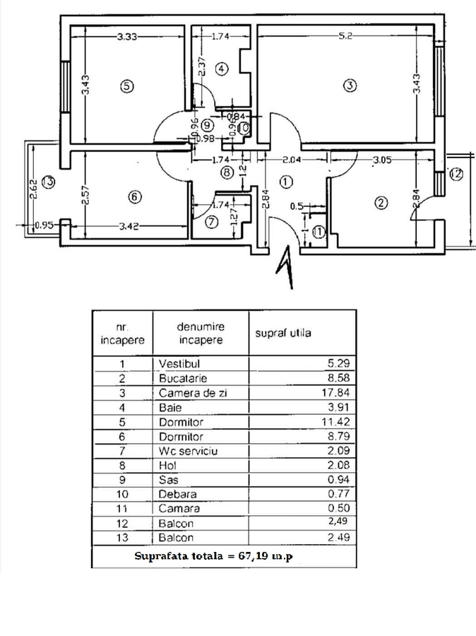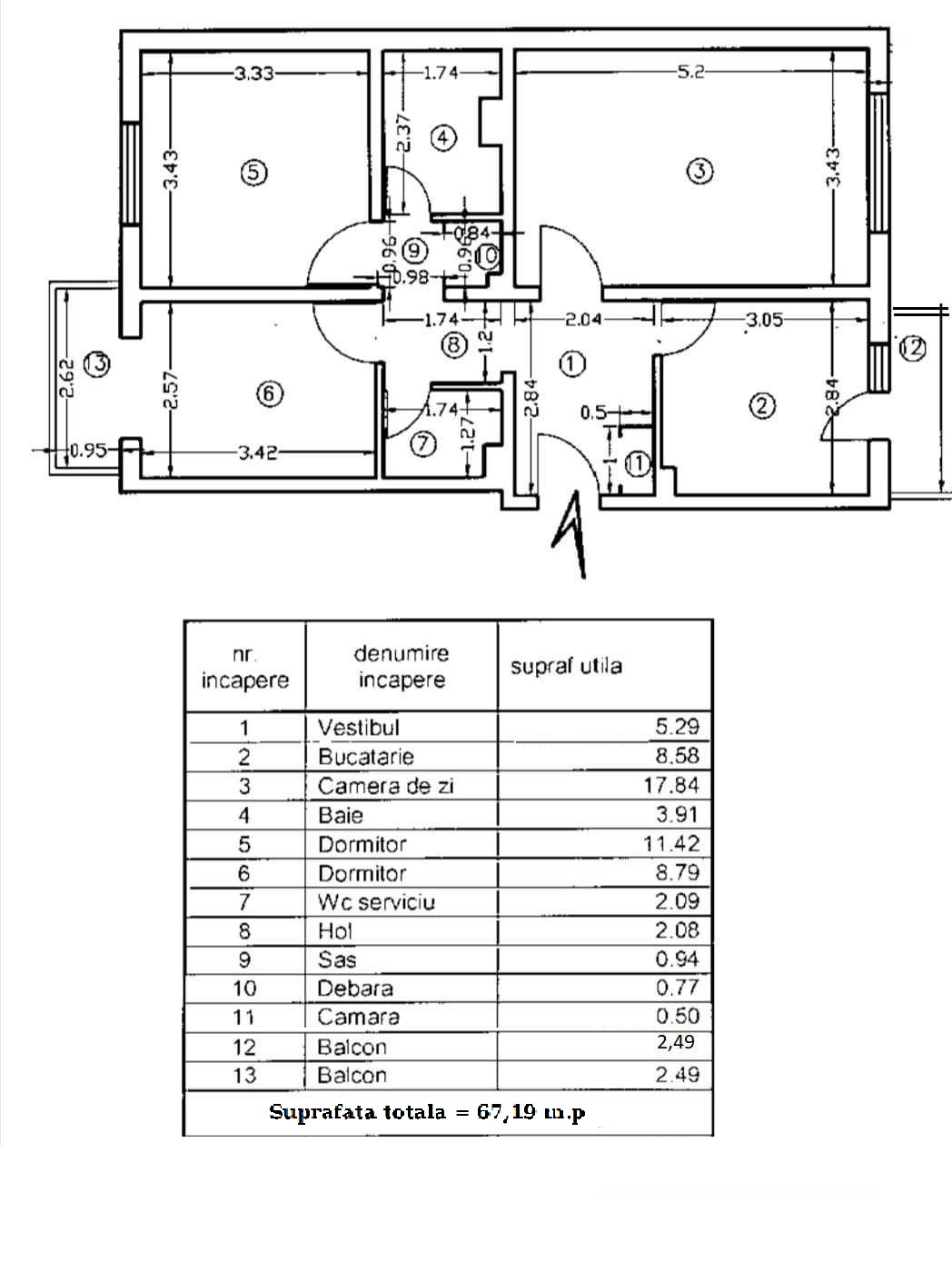 apartament confort 1, decomandat, etaj 1/4, bloc din 1980, cu 2 grupuri sanitare si 2 balcoane, vedere mixta, orientare Est si Vest, bucataria si sufragerie catre EST, si dormitoarele catre VEST