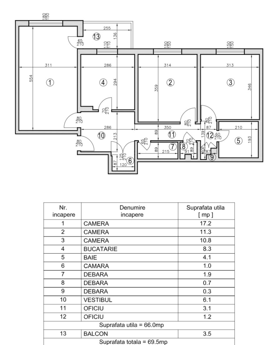 Optiuni interior: 2 grupuri sanitare Apometre Balcon Debara Izolatie termica Repartitoare caldura Termopan Usa metalica M 8 min.