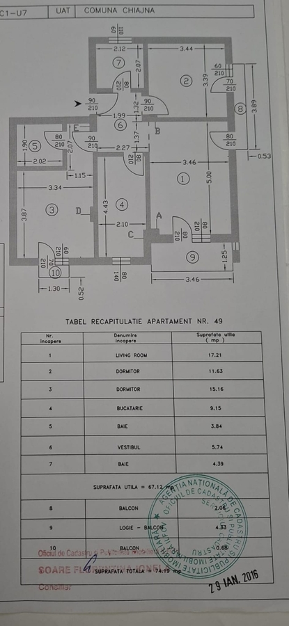 Locuinta este decomandata, avand o suprafata utila de 74 mp, si este amplasata la etajul 3 din 4 al unui imobil construit in anul 2017 (fara lift).