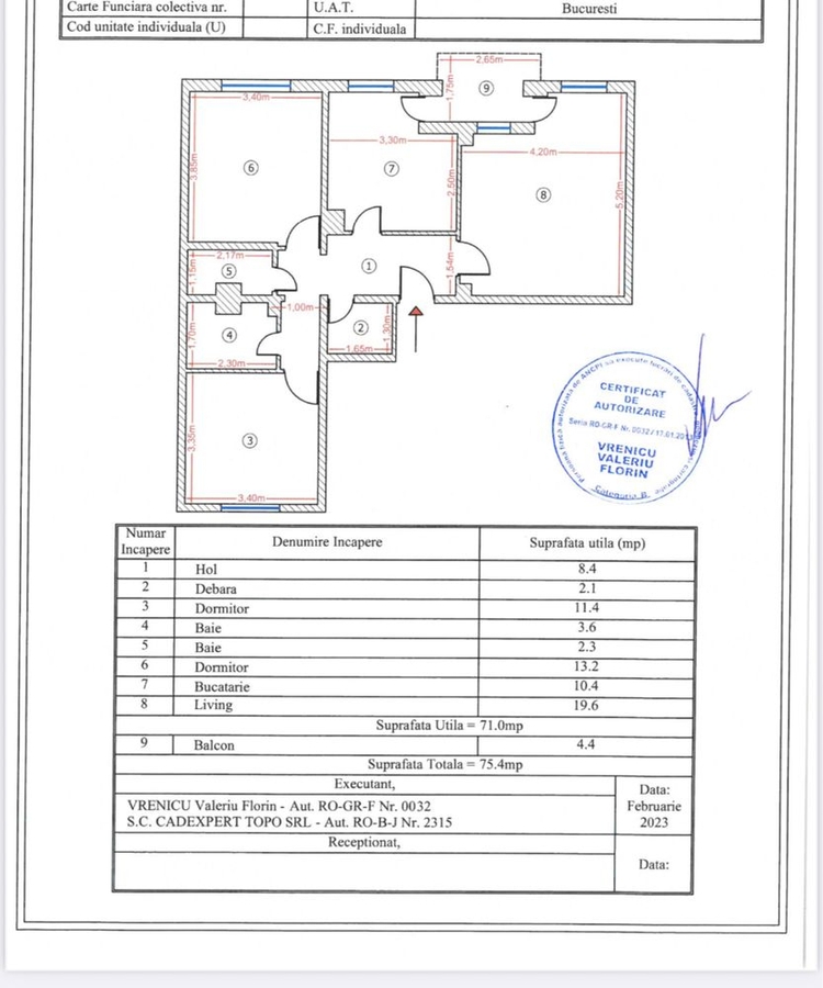 Optiuni interior: 2 grupuri sanitare Aer conditionat Balcon Debara Termopan Usa metalica