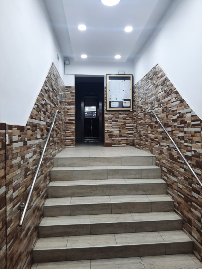 bloc an 1984 reabilitat termic, stradal, intrarea in fata si vedere fata, necesita renovare, bloc curat, bine intretinut, camere video, 85 000 eur negociabil,