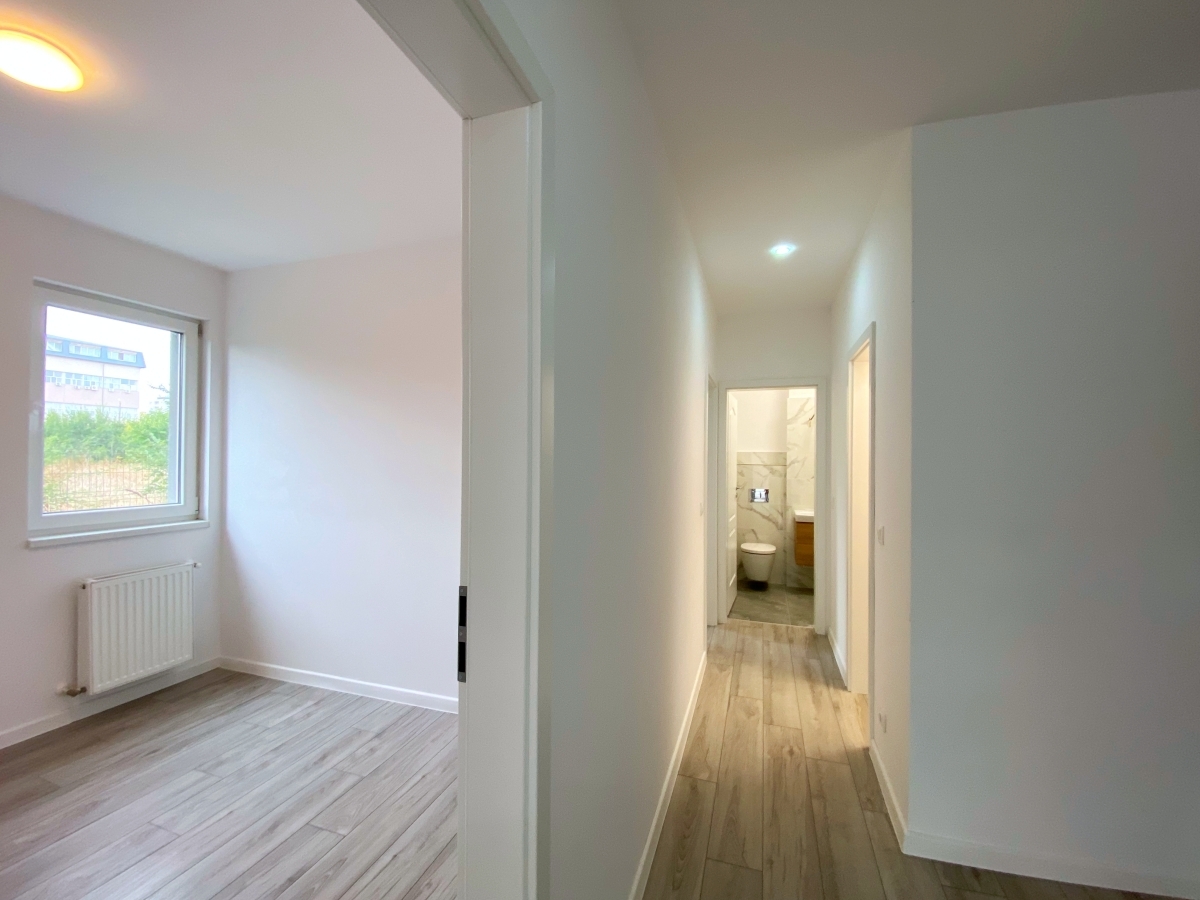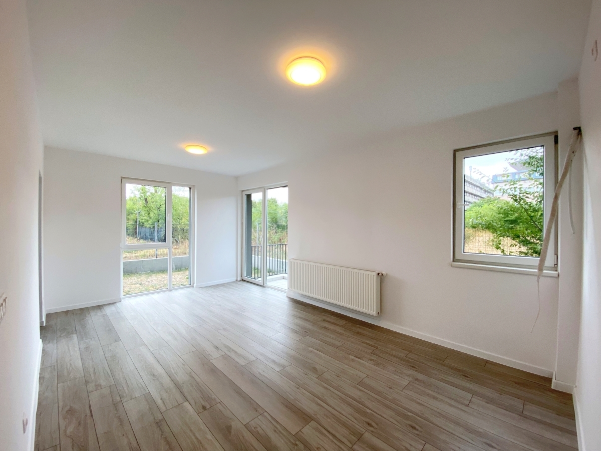 Mai mult decat atat, apartamentul se bucura de o curte proprie de 86mp, care va fi dotata cu sistem de aspersoare si gazon (in octombrie, deoarece atunci este disponibil meseriasul).