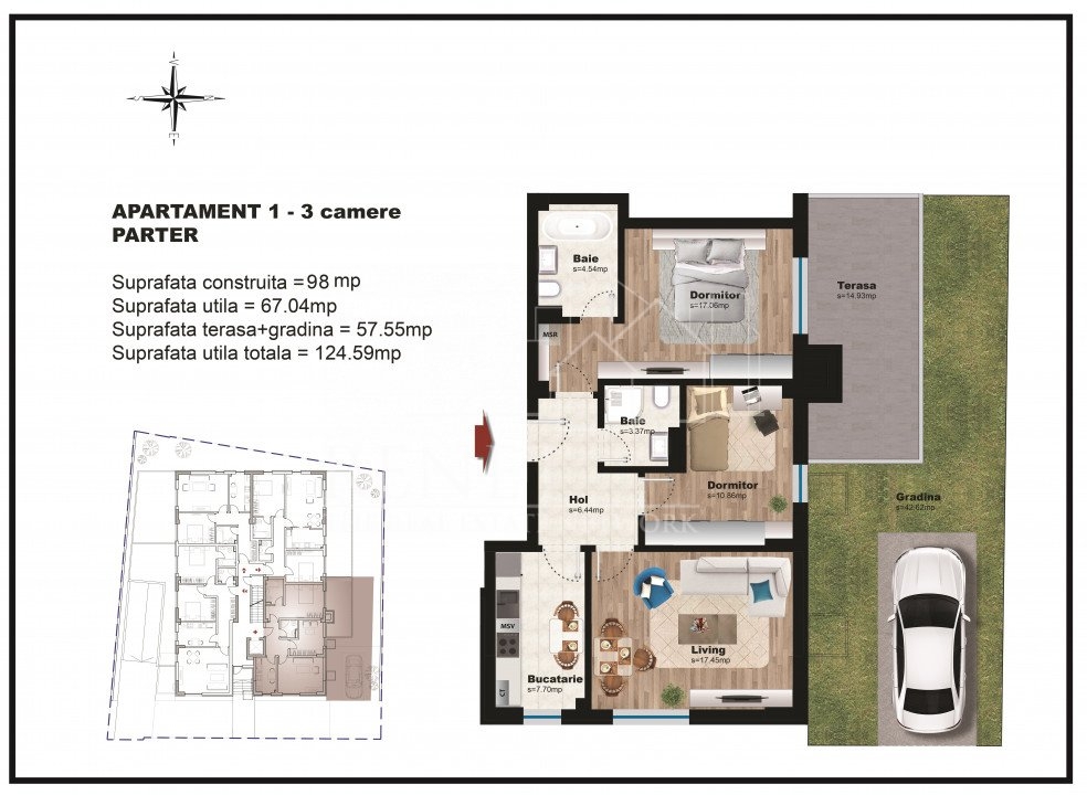 IMPREUNA CU APARTAMENTUL SE POATE ACHIZITIONA SI UN LOT DE TEREN IN PROPRIETATE, IN SUPRAFATA DE 45MP, CU ACCES SEPARAT DIN STRADA PENTRU GRADINA SAU PARCARE PENTRU DOUA MASINI LA VALOAREA DE 15.000 EURO PLUS TVA