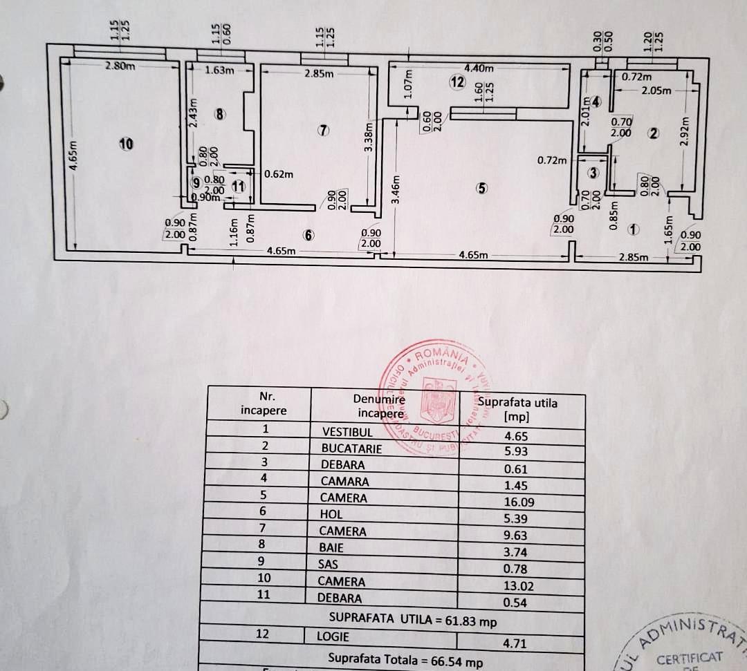 Suprafata utila totala : 67 mp (62 mp pe interior + 5 mp balconul).