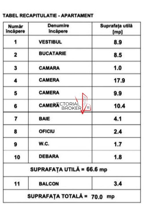 Vectorial Broker va prezinta la vanzare un apartament de 3 camere in Cartier Titan, reper Hipermarket SUPECO-Postavarul/Piata Salajan/Metrou 1 Dec 1918 sau Nicolae Grigorescu, confort 1 decomandat, avand suprafata de 70 mp, cu 1 baie(geam) wc serviciu(geam posibilitate de extindere/marire) si 1 balcon pe living. Locuinta este situata la etajul 7, intr-un imobil anvelopat, tip bloc de 10 etaje, construit in anul 1979, avand 4 apartamente pe palier. Apartamentul este fara imbunatatiri si dispune de urmatoarele finisaje: calorifere: fonta; ferestre: pvc; incalzire: termoficare; pereti: faianta, lavabil; podele: parchet, gresie; usa intrare: metal si este pretabil pentru locuinta. Recomandam aceasta proprietate persoanelor active pentru care o locuinta in apropiere de mijloacele de transport in comun, statie de metrou, centre comerciale, supermarketuri, piete agroalimentare si parcuri, reprezinta un factor de decizie. Acte la zi! Pretul este usor negociabil si se accepta orice fel de creditare. ID intern: VB0522796.