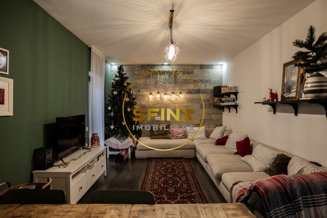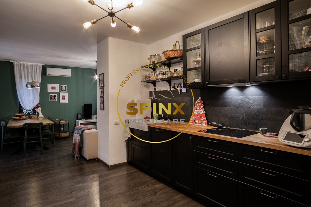 - etaj 1 - dormitor cu dressing, bucatarie open space cu o sufragerie generoasa, grup sanitar cu dus, uscatorie si balcon deschis