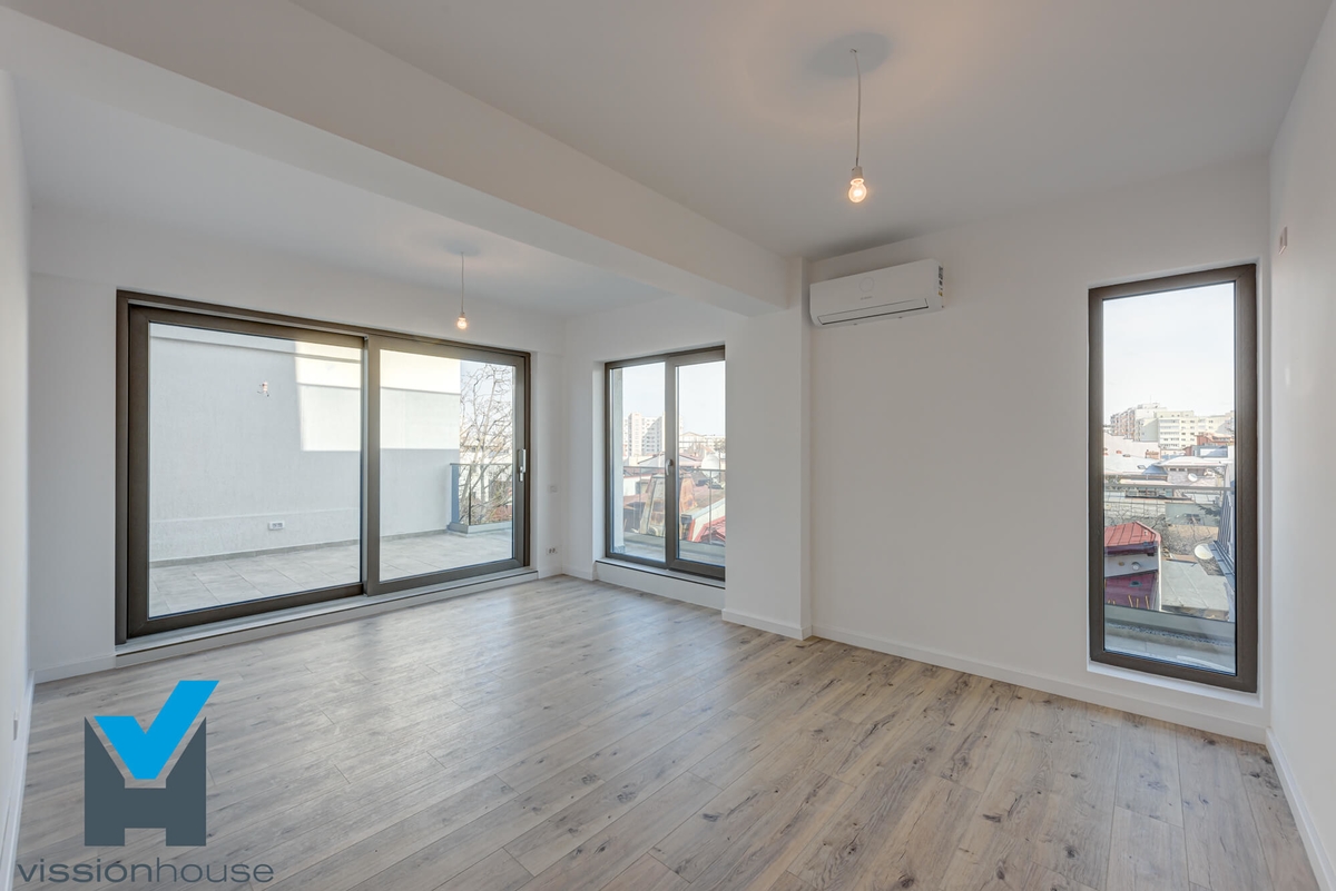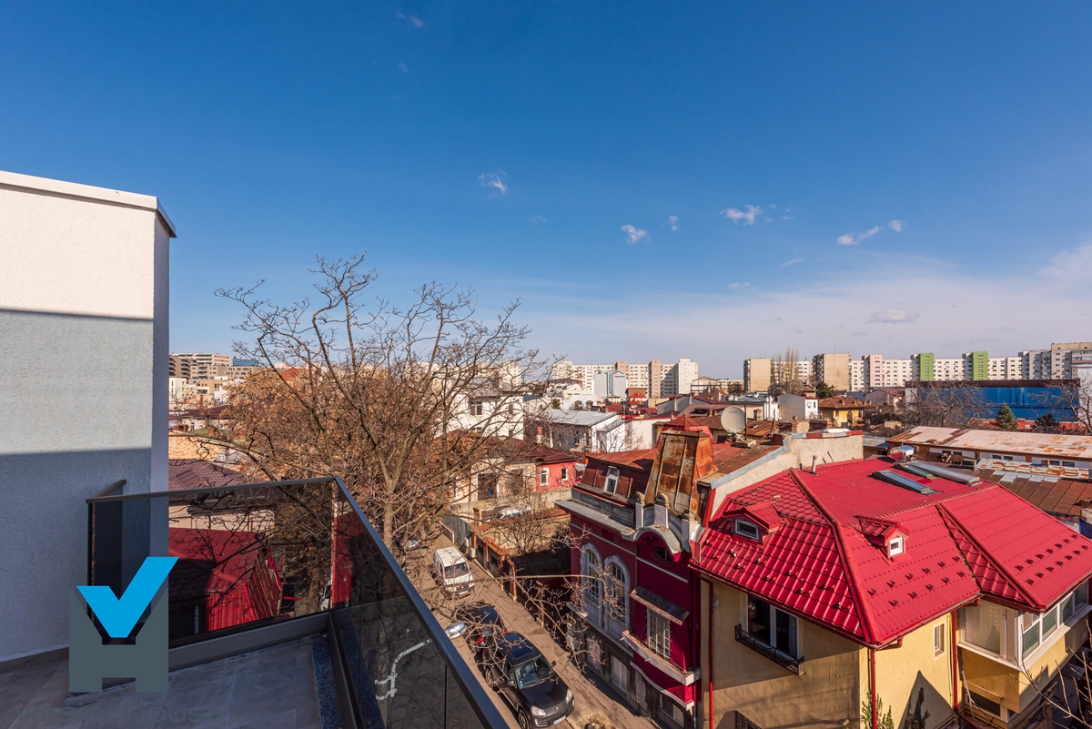 Vederea apartamentului este unica, spre o zona linistita de case, de unde poti sa admiri linia orizontului. Te afli in centrul orasului si in acelasi timp esti ferit de zgomot si beneficiezi de intimitate.