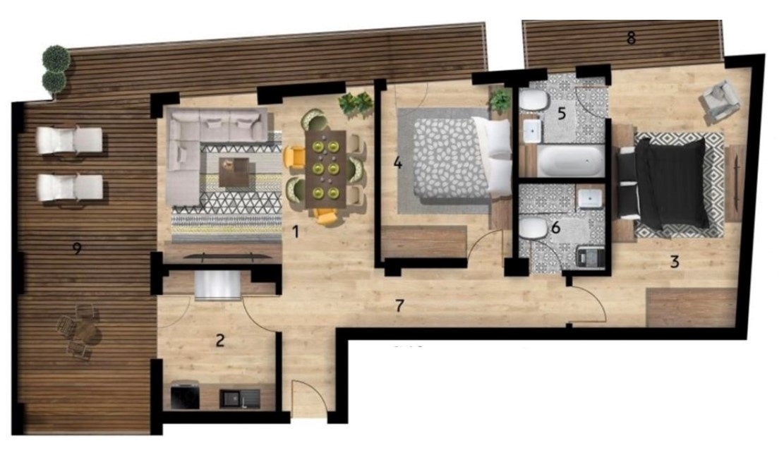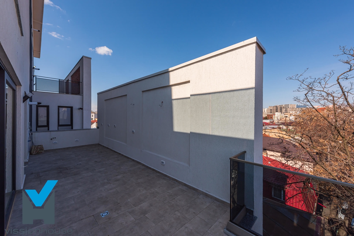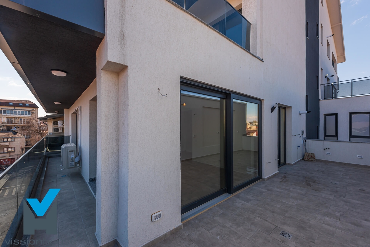 Frumoasa terasa a apartamentului are o zona compacta de 23 mp astfel incat ramane suficient loc si pentru zona de relaxare.