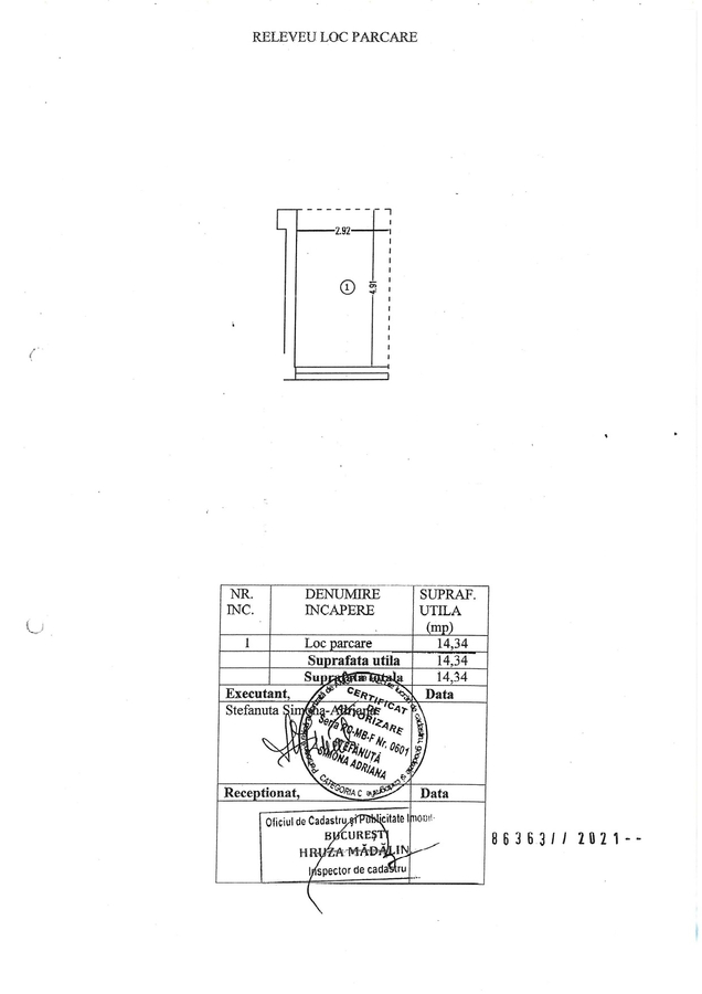Locul de parcare este un alt beneficiu ce vine la pachet cu toate cele de mai sus. Se afla in subteranul imobilului, are acces cu liftul si unde mai pui ca este suficient de lung incat sa poti crea o zona pentru depozitare ( are o suparafata de 14,33 mp - 4,9 m lungime cu 2,9 latime)