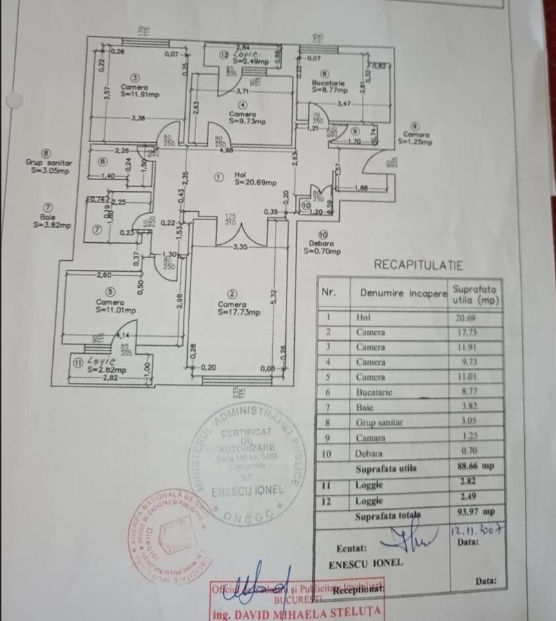Suprafata totala a apartamentului este de 94mp, incluzand cele doua logii a cate ~2.5mp.
