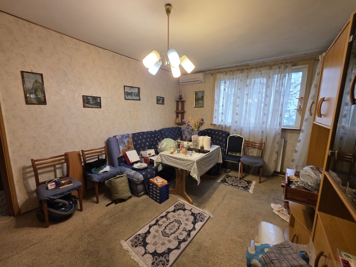 Apartamentul este intr-un bloc tip H, la etajul 2 din 4, are 2 grupuri sanitare, gresie, termopane, usa metalica si aer conditionat.