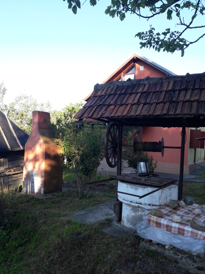 Teren de 980mp cu pomi fructiferi, deschidere 50m, imprejmuit cu gard din lemn, fantana, gratar, magazie,2 fose septice care comunica, gaze la poarta.