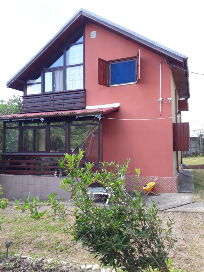 Vila din lemn de 3 camere, parter si etaj, an constructie 2008, suprafata utila 89mp, baie, bucatarie,living open space si terasa, la parter iar la etaj 2 camere, balcon si hol. Alte detalii: gresie, faianta,termopan, parchet, mobilata in intregime, 2 centrale electrice, boiler electric, cablu.