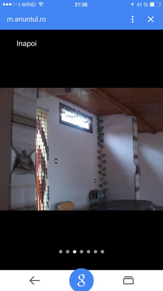 Construcția noua este făcută din Bca acoperită cu tabla, finisata la interior (pardoseala betonata, pereții tencuiți) ridicată in 2008 (unde a funcționat un bar) curtea foarte spațioasă 3700 mp din care 500mp vie,grajd mare,cotețe,porumbar , se vinde cu 19000 de euro urgent.