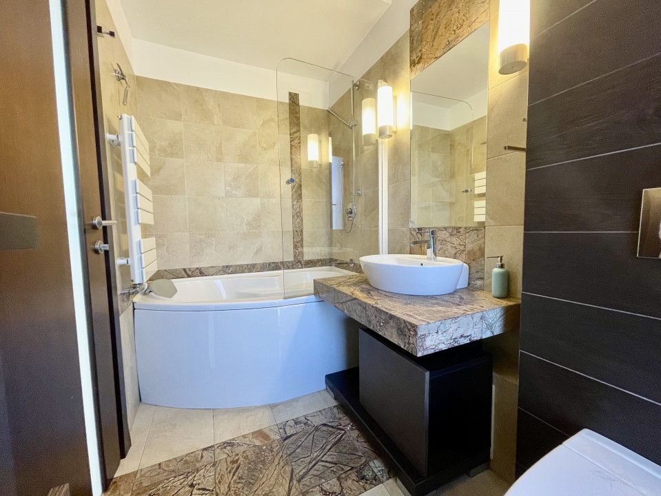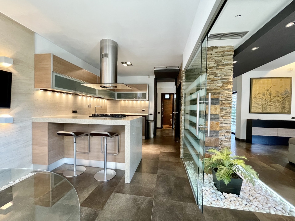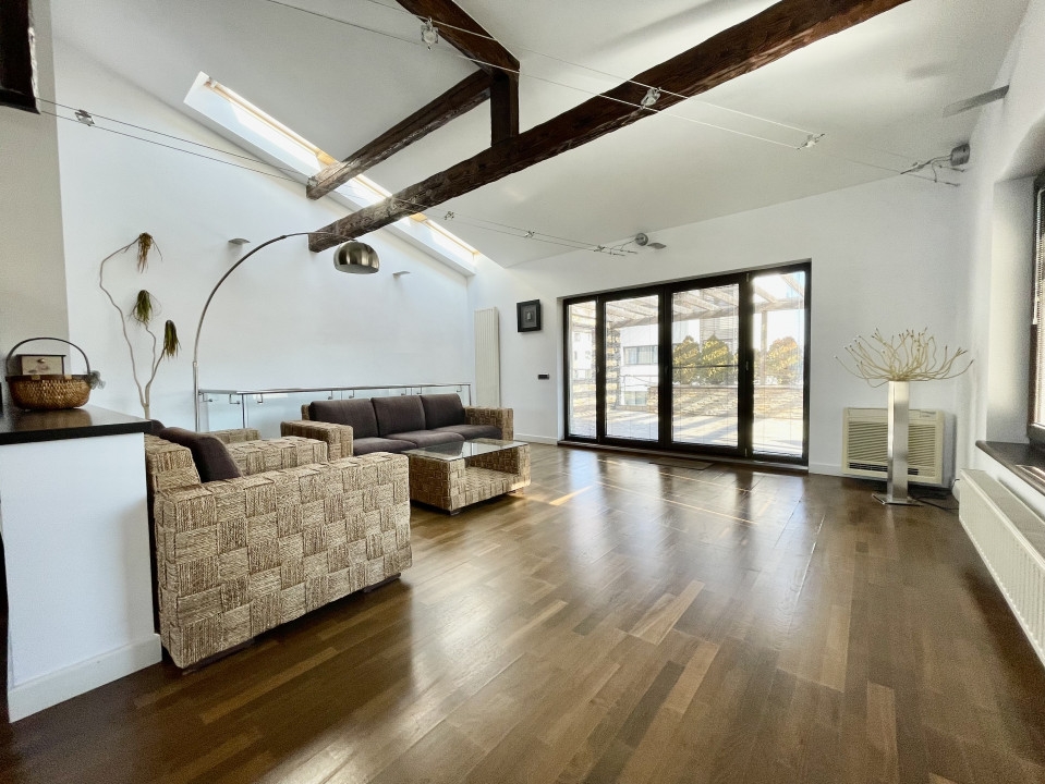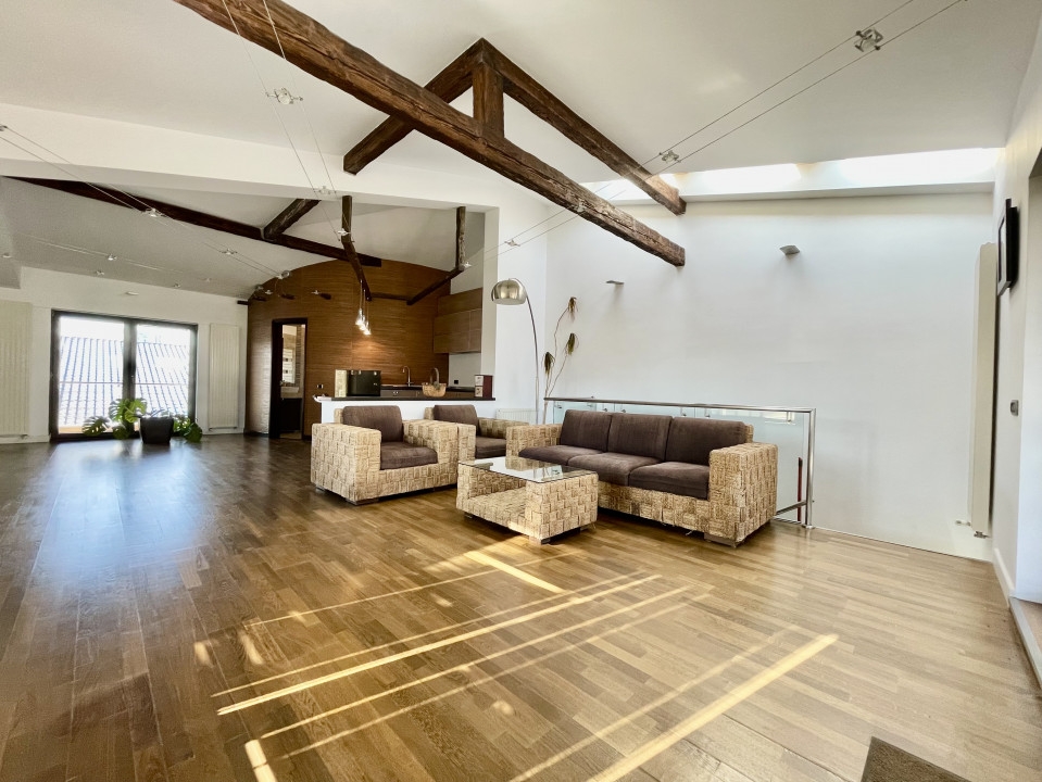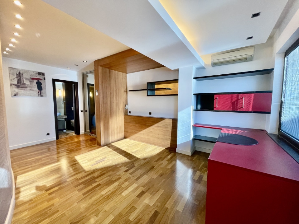 Rezidenta de exceptie din Aviatiei, Bucuresti, cu o suprafata utila de 310 mp si terase de 51 mp, reprezinta o oaza de confort si eleganta. Cele 6 camere, cele 2 sufragerii generoase si cele 4 dormitoare cu bai proprii si terase creeaza un ambient rafinat. Sistemul de incalzire prin pardoseala, calorifere si semineu pe lemne adauga o nota calda. Subsolul bine structurat include camera tehnica, spalatorie, uscatorie si un adapost ALA pentru siguranta. La parter, livingul spatios, bucataria inchisa si zona de dining sunt locuri perfecte pentru relaxare. Etajul 1 surprinde cu cele 3 dormitoare spatioase, fiecare avand dressing, baie proprie si terasa. Mansarda, amenajata ca un apartament, ofera un living generos, mini-bucatarie, dormitor, baie si o terasa superba de 33 mp. Garajul pentru doua masini, accesibil direct din casa, dispune de spatii ample de depozitare si o chiuveta. Terenul de 384 mp include o curte libera de 230 mp, cu un put in fata si un foisor de vara in spate, dotat cu gratar si loc pentru luat masa. Dotarile moderne, cum ar fi sistemul de alarma, video-interfon, aspiratorul centralizat, panoul solar, sistemul de racire HVAC si aerul conditionat in fiecare camera, subliniaza standardele inalte ale acestei proprietati. Descoperiti eleganta si confortul la fiecare colt.