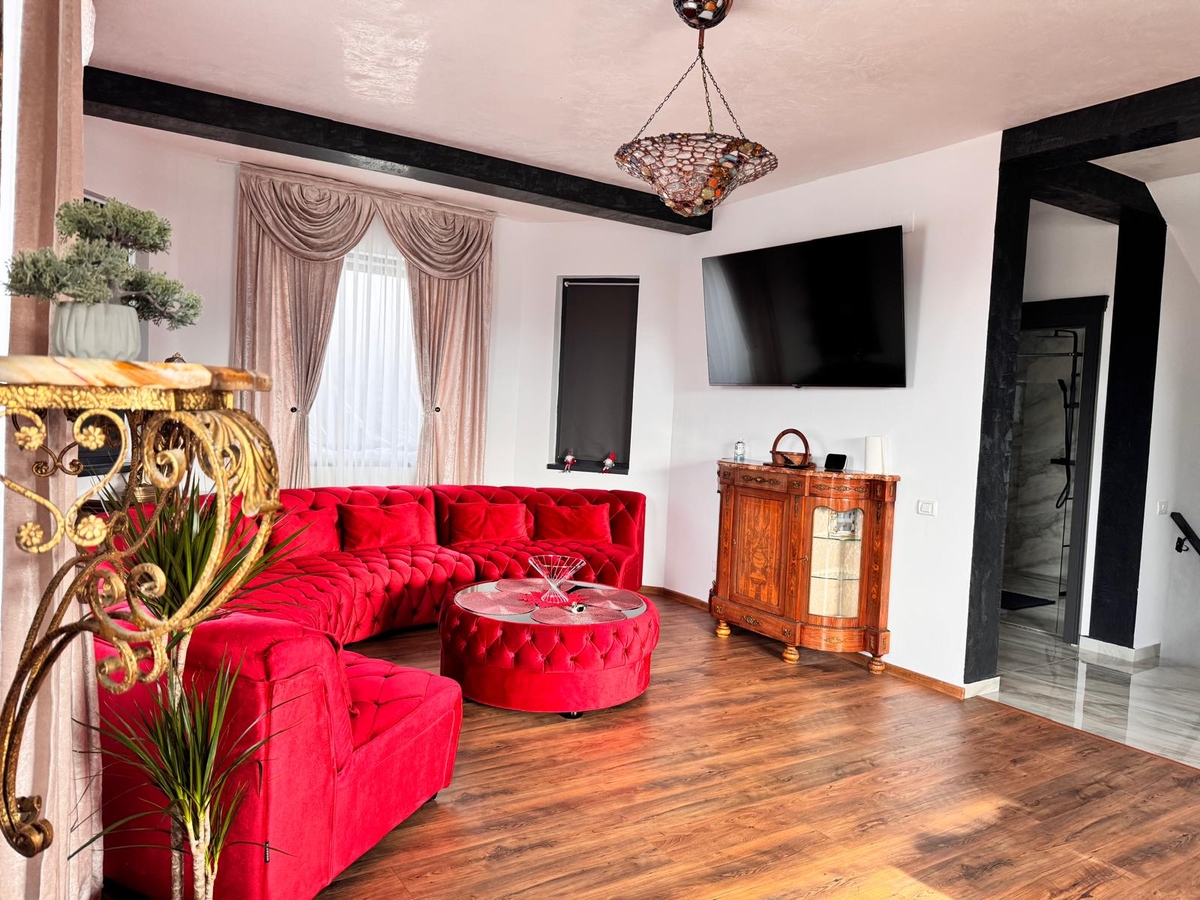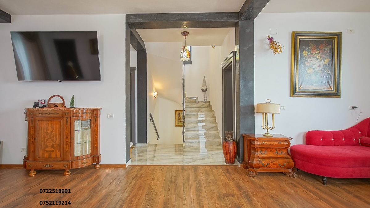 Va propunem spre achizitie/cumparare o vila cocheta, D+P+M, 245 mp, in stil boutique, ce imbina eleganta cu confortul modern. Vila este alegerea ideala pentru casa de vacanta, fiind decorata intr-un stil elegant cu accente renascentiste si baroce, oferind o experienta unica in inima Transilvaniei.