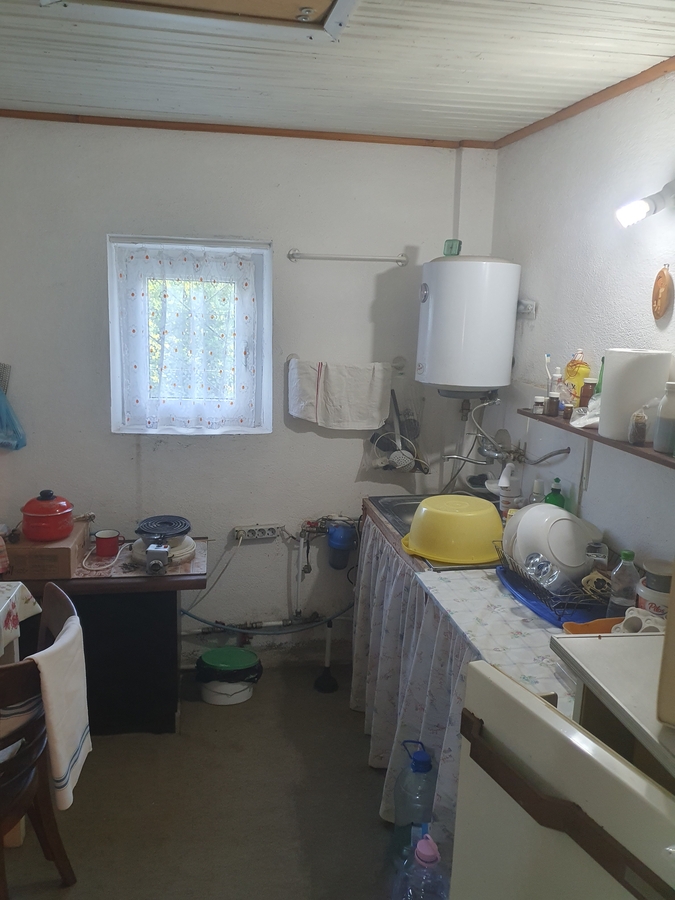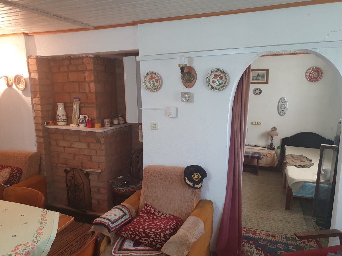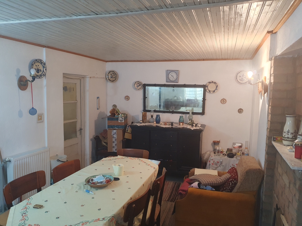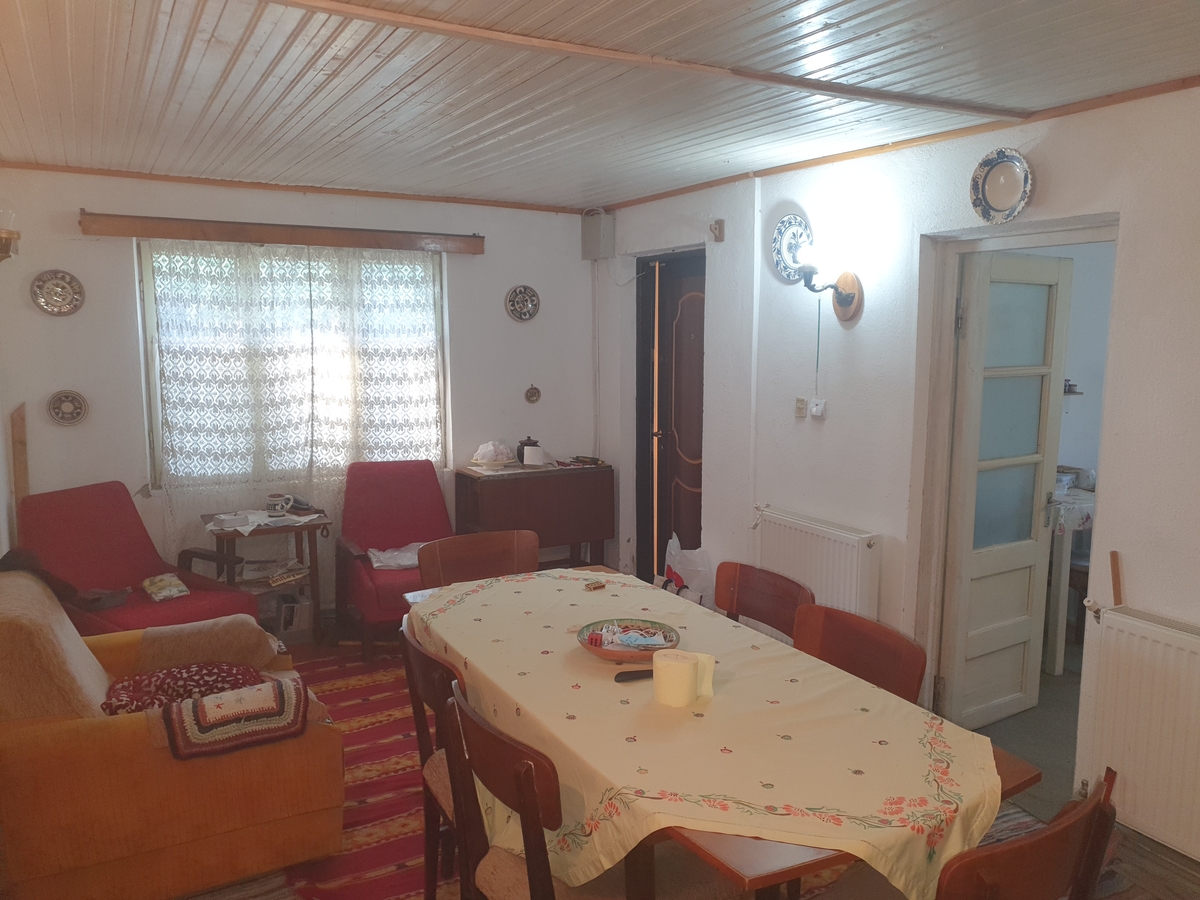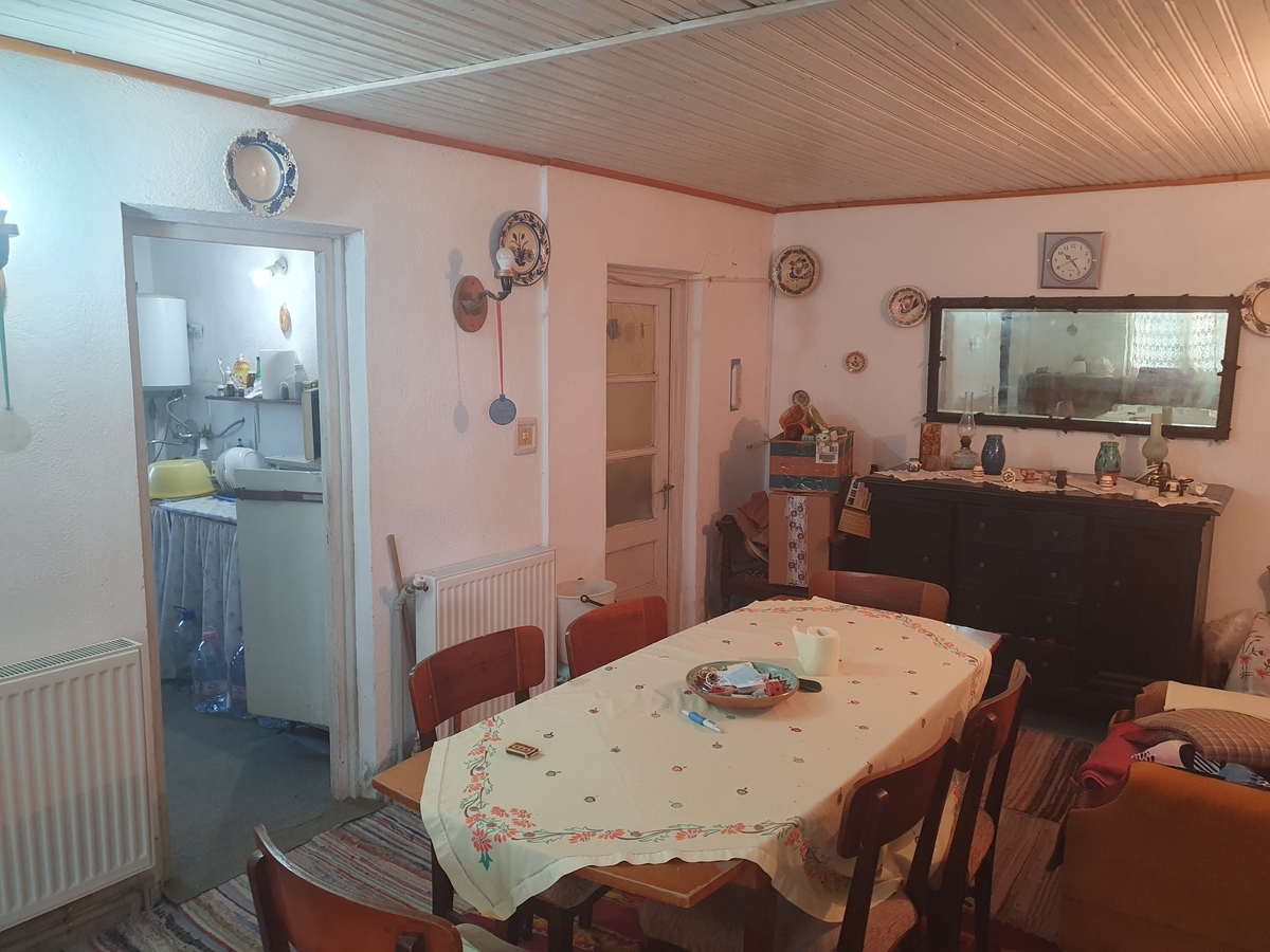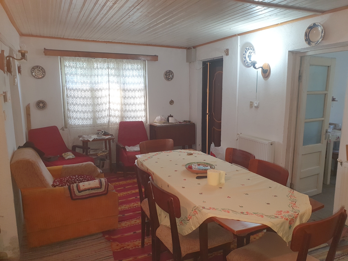 Casa modesta 3 camere caramida si lemn, acoperita cu tabla, garaj cu intrare separata langa casa, incalzire cu centrala electrica la calorifere, baie si bucatarie - put cu hidrofor - apa in casa.