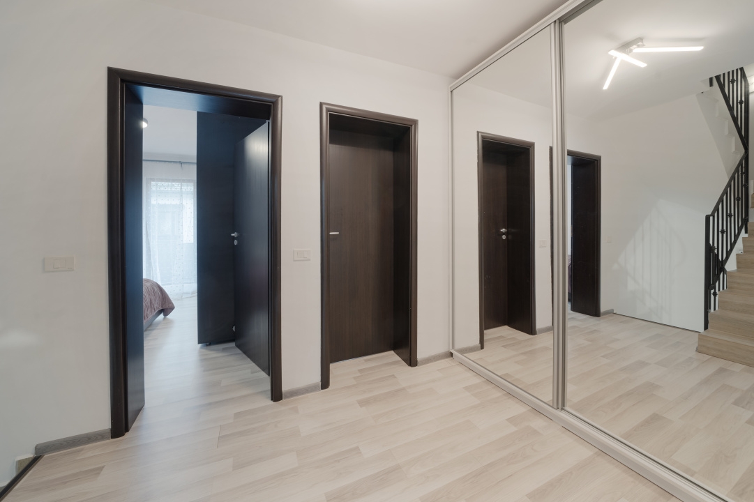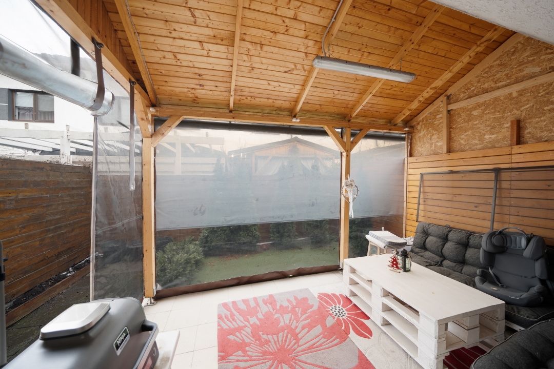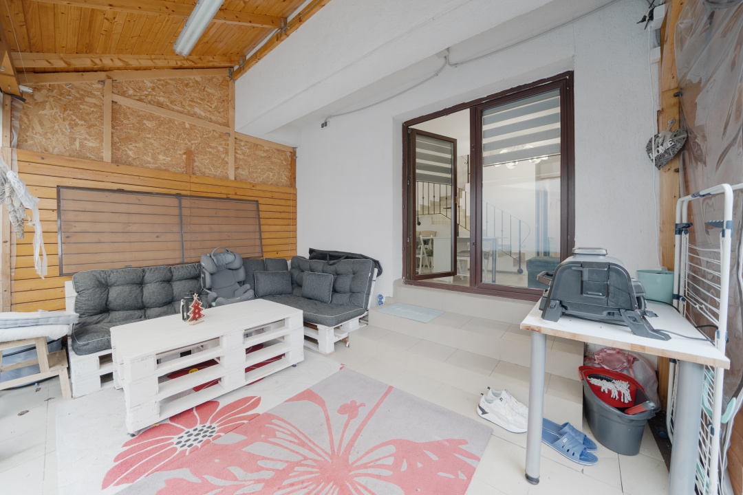 Suntem incantati sa va prezentam o casa P+1+pod, situata pe strada Luceafarului nr.22ª, in comuna Chiajna, jud. Ilfov. Proprietatea beneficiaza si de un teren de aprox. 110 mp, din care liber este 40 mp. Casa a fost ridicata in anul 2016. Va invitam sa vedeti turul virtual pentru a explora spatiile si comaprtimentarea. Imobilul beneficiaza de majoritatea utilitatilor( gaze, canalizare, curent) urmand ca in perioada urmatoare sa fie realizata si racordarea la sistemul de alimentare cu apa curenta pentru care au fost deja alocate fondurile necesare si s-au obtinut aprobabarile aferente. Strazile adiacente sunt asfaltate si beneficiaza de ilumnat public, carteierul fiind unul modern. Parterul este compus dintr-un hol de intrare, un living generos de peste 21 mp, o bucatarie inchisa de 8mp, o baie iar in corpul vechi de casa mai avem 2 camere, o baie si un spatiu de depozitarece cu acces din bucatarie. La etaj regasim 2 dormitoare, o baie si o un balcon cu acces dintr-unul dintre dormitoare. Podul se intinde pe toata suprafata casei noi si i-au fost deja aduse amenajari printr-o compartimentare in doua camere de aproxiamativ 14 mp fiecare, avand o suprafata desfasurata de aproximativ 35 mp. Imobilul este o investitie excelenta, putand fi utilizata ca un viitor camin pentru o familie, beneficiind si de o curte interioara comuna cu celelalte unitati locative. Va asteptam la o vizionare sa descoperim impreuna potentialul acestui imobil!