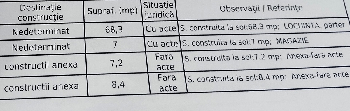Locuinta cu 3 camere din paianta, locuibila, 68 mp fara anexe, incalzire cu 3 sobe de teracota, apa, curent, gazele la cativa metri de proprietate (doar va bransati), parter, teren 579 mp, deschidere 17,5 mp, 350 mp construibil cu fundatie, 220 mp constructii fara fundatii (terasa, garaj, foisor, gradina, gratar, etc), gard nou din tabla ondulata, acoperis din tabla de aluminiu, acte si vecini ok, eliberabila in maxim 2 luni, agentie, comision 0%