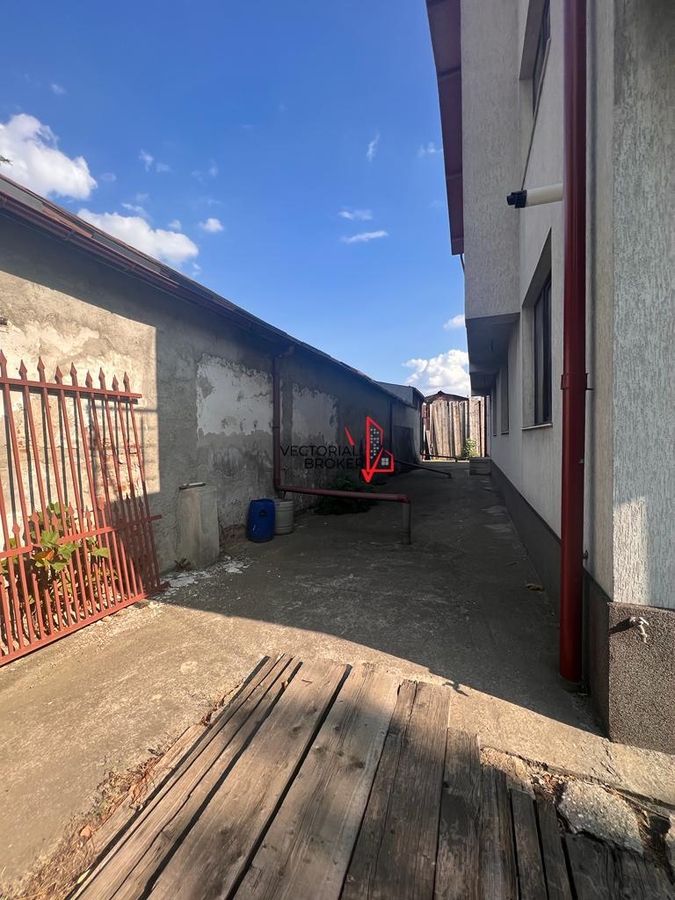- un total de 8 camere (5 de locuit si 3 spatii destinate uzului comercial cu iesire la strada principala), 6 bai (cate una pentru fiecare spatiu de la strada si 3 destinate casei de locuit) si 1 bucatarie;