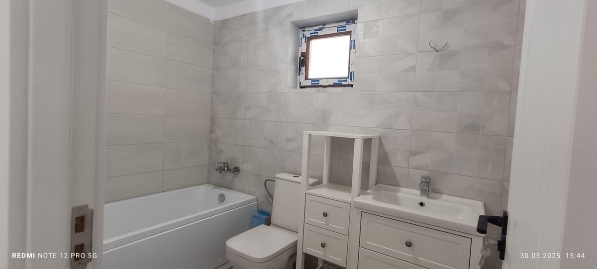 Duplex 5 camere, parter plus etaj 1, 3 grupuri sanitare, parter 2 camere, bucatarie, grup sanitar, etaj 1, 3 dormitoare, 2 grupuri sanitare, gresie, faianta, parchet, termopan, gaze, apa, curent electric, centrala proprie, la cheie,