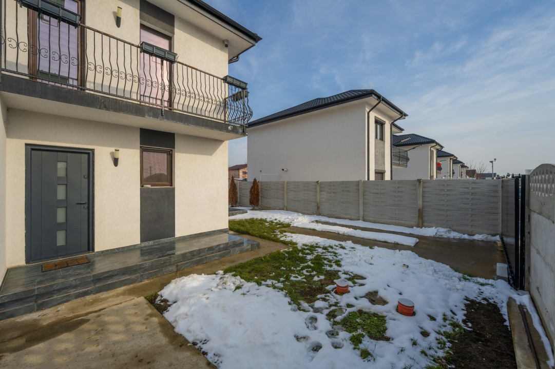 Casa face parte dintr-un proiect de 8 case individuale, finalizate in anii 2023-2024. Este construita pe un lot de teren in suprafata de 265 mp si este dispusa pe parter si etaj si beneficiaza si de un pod pentru depozitare. Casa are o suprafata totala de 129,5 mp, din care 114 mp sunt utili.