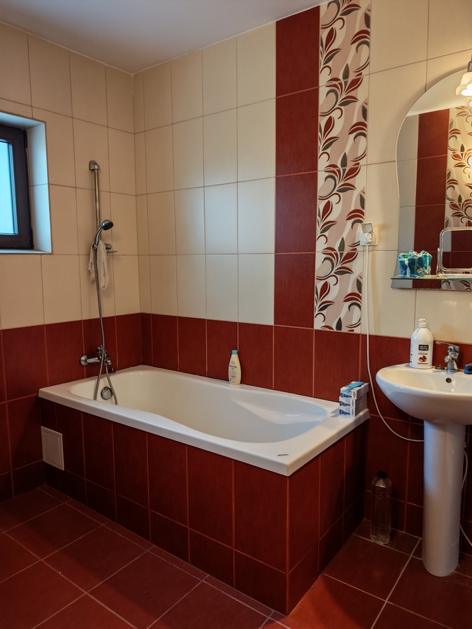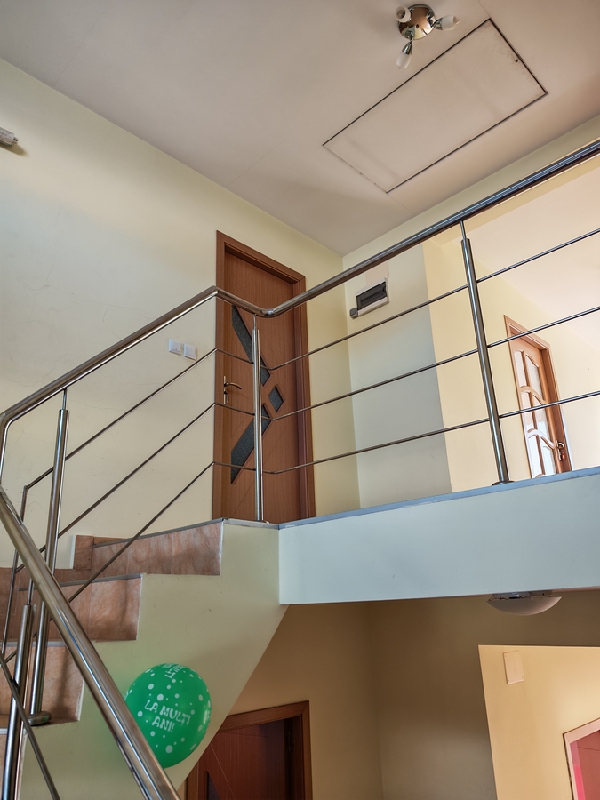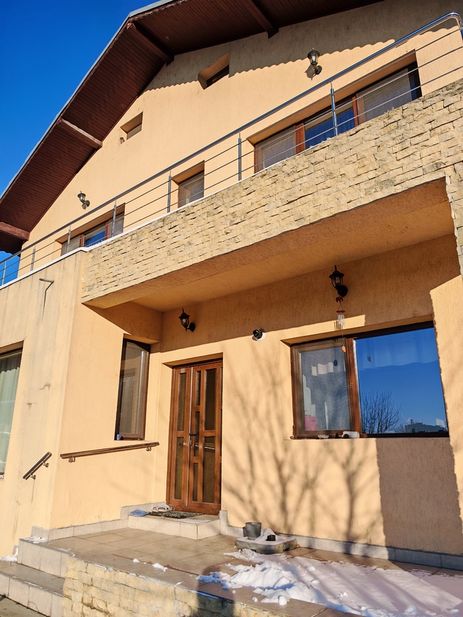 Ofer spre vanzare casa P+1E, cu 5 incaperi, bucatarie si 2 grupuri sanitare, camerele de la etajul 3 dispun de balcoane, iar livingul de la parter este foarte generos ca spatiu. Bucataria este realizata pe comanda, iar grupurile sanitare sunt ample, cel de la parter fiind dotat cu dus si cada. Casa beneficiaza si de un pod spatios si curat, ideal pentru depozitare. Exista posibilitatea vanzarii cu mobilier inclus sau unele incaperi pot fi evacuate. Beneficiaza de izolatie termica de 10 cm. Detine centrala proprie, racordare la apa si energie electrica. Suprafata desfasurata este de 198 mp, cu o amprenta la sol de 100 mp, amplasata pe un teren de 420 mp. In curte se afla si o magazie de 16 mp, prevazuta cu beci.