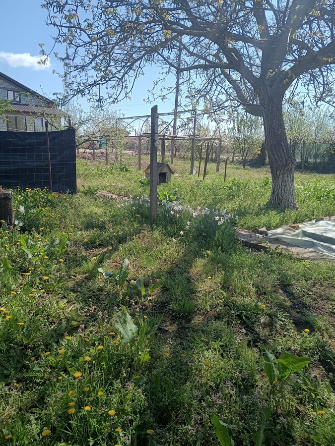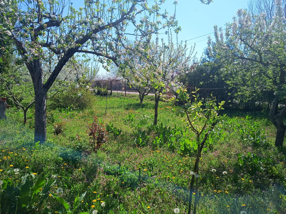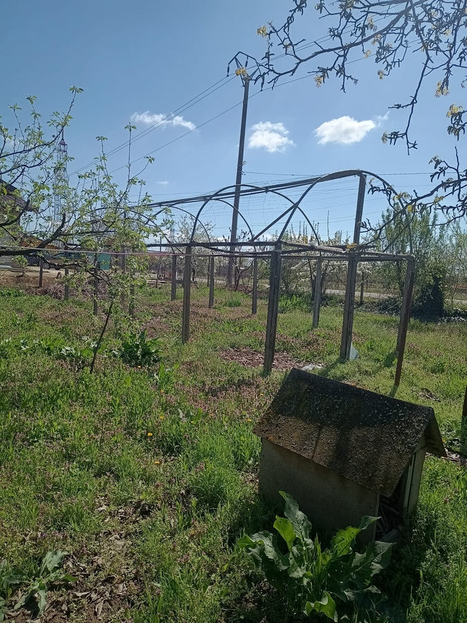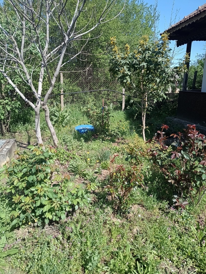 Gradina are pomi fructiferi 36 de bucati, cu vie 5 butuci si trandafiri 15
