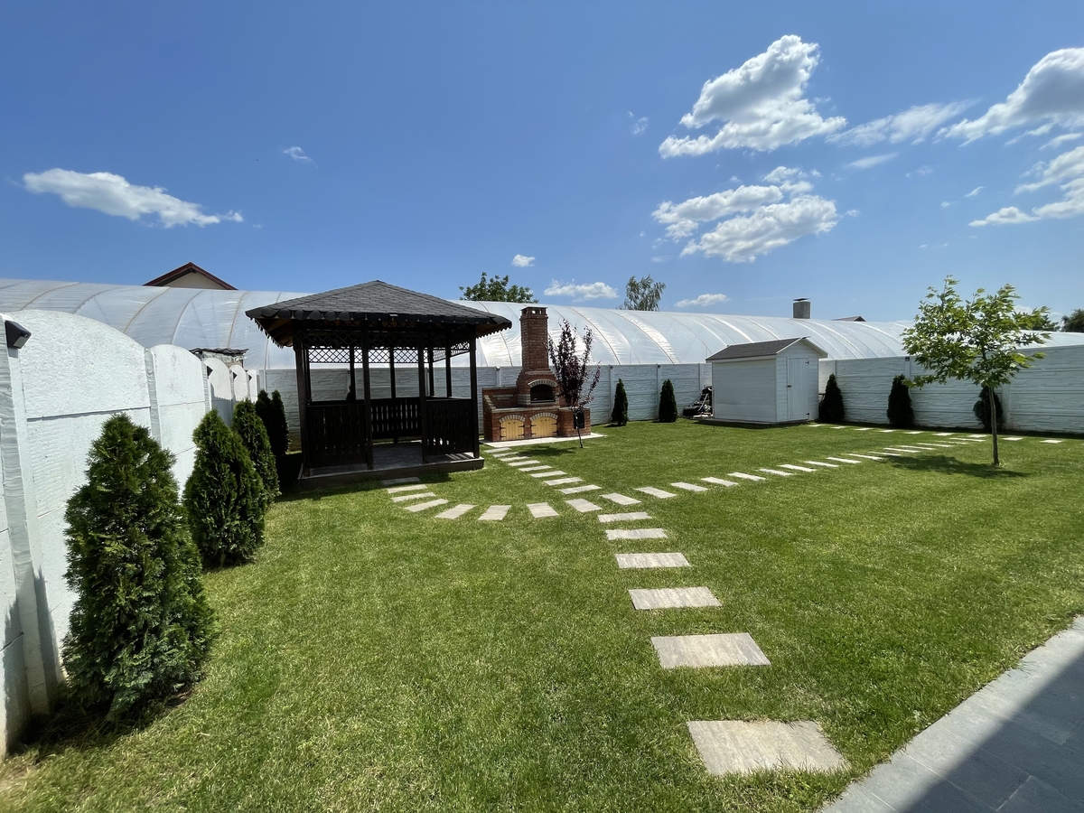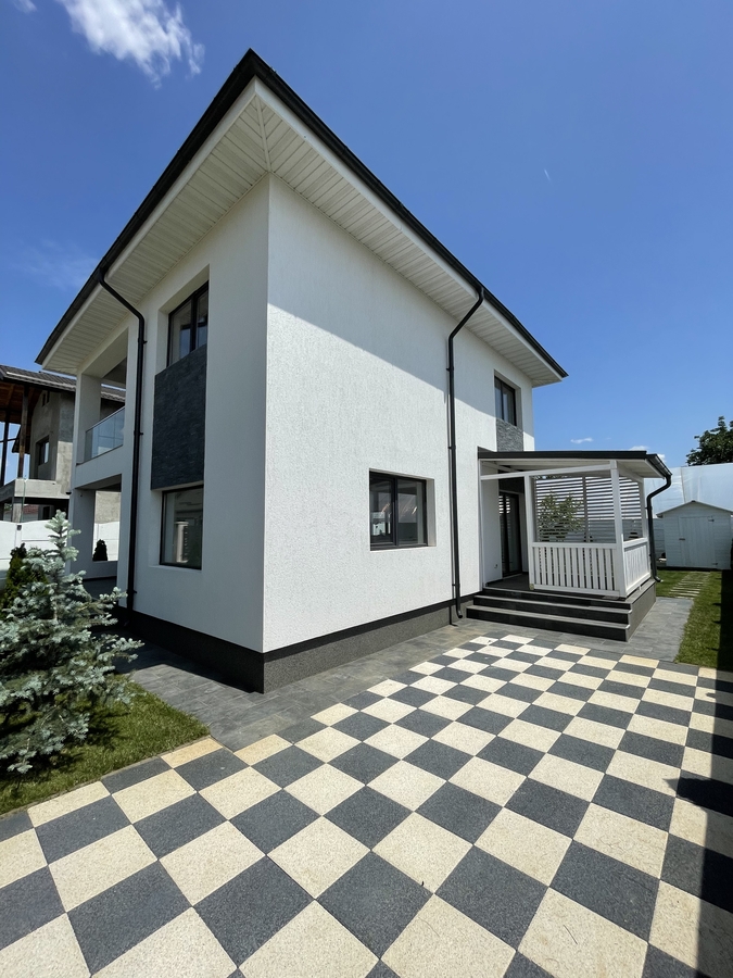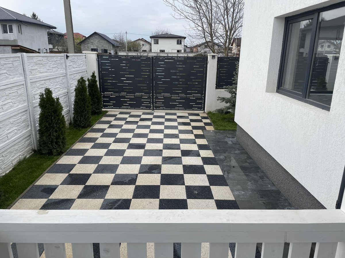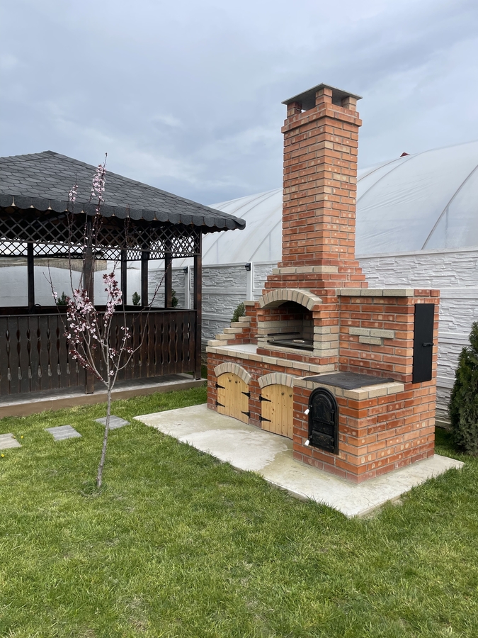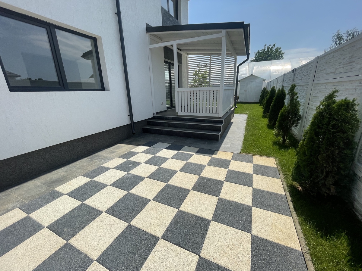 Curtea este amenajata cu alei de acces si trotuare din pavele, dale, greasie de exterior, gazon, pomi, lampi solare LED. Casuta/ magazie pentru depozitare sub care se afla beciul si putul gard din beton si tabla decupata foisor 12 mp. Gratar zidit din caramida plina format din: Masa de lucru, gratar mare de inox, plita, afumatoare si 2 spatii de depozitare prevazute cu usi din lemn. Finisaje de foarte buna calitate. Detin fotografii din toate etapele constructiei.